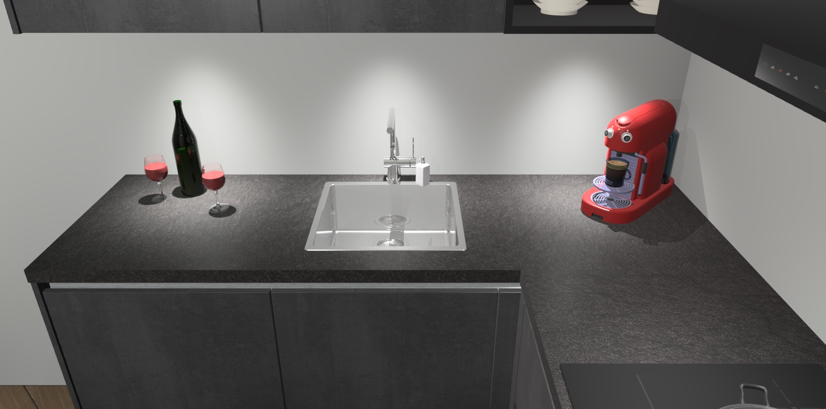 - Bij een hoekwerkblad zijn de hoeken in gevreesd en op maat gemaakt