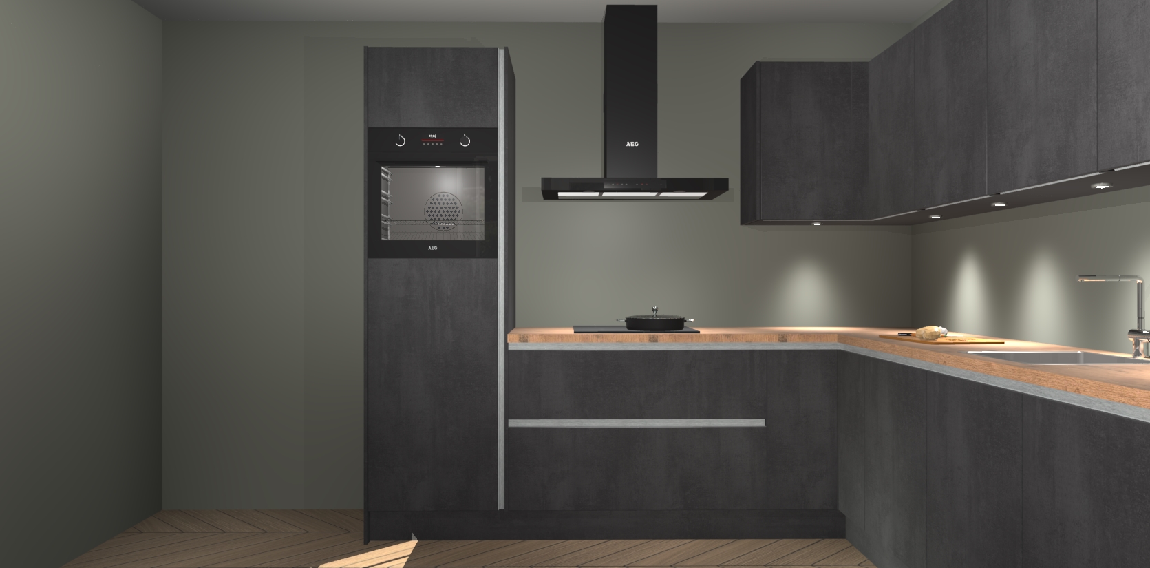 De Beton Zwarte greeploze keuken Debar is uitgerust met vijf inbouwapparaten die elke kooktaak handig en efficiënt maken. Een oven, inductiekookplaat, afzuigkap, vaatwasser en koelkast zijn standaard, maar kunnen na bestelling eenvoudig worden geupgrade naar AEG. Profiteer vervolgens van de softclose deuren voor snelle toegang en geruisloze toegang.
