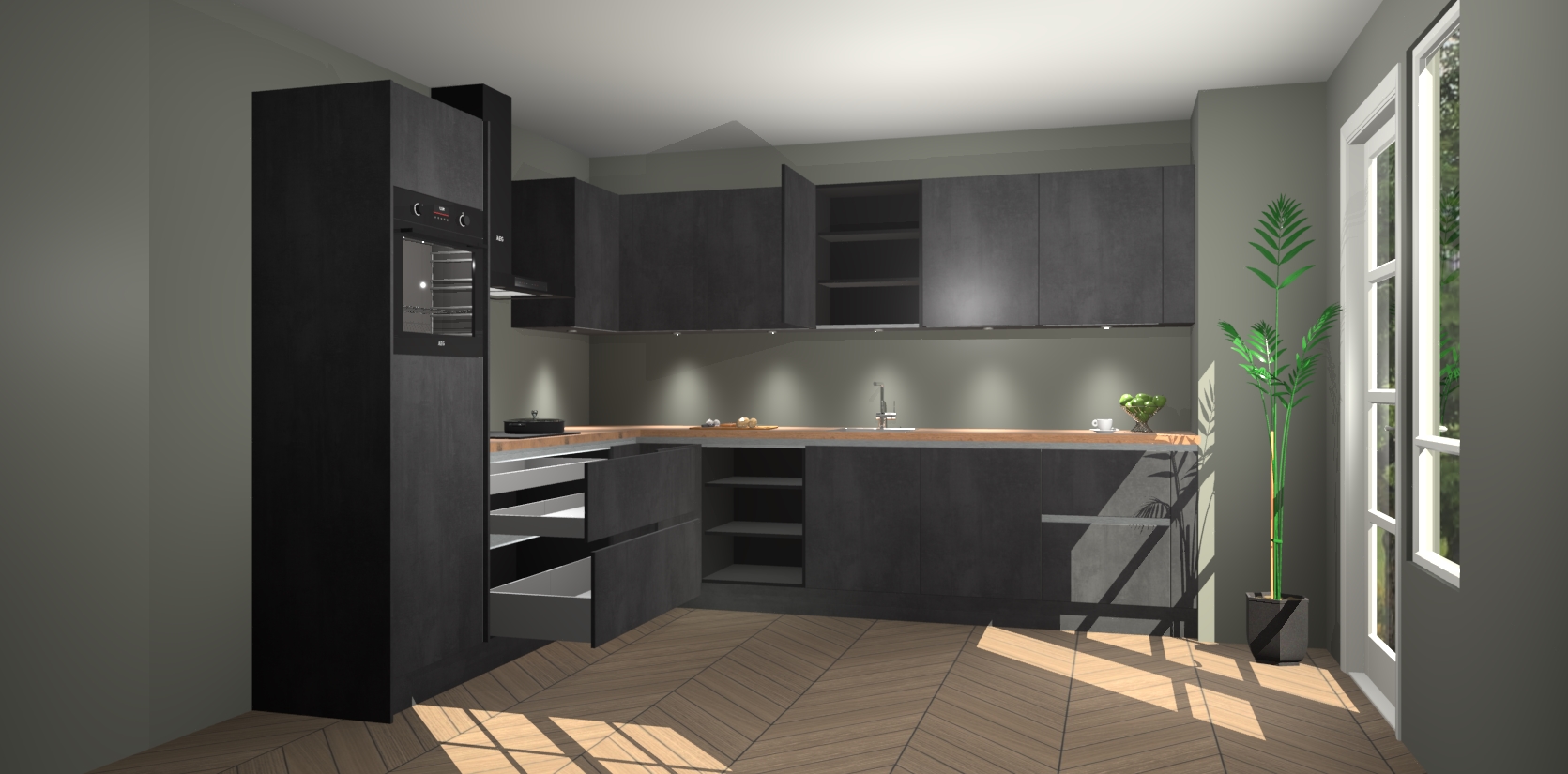 Als u op zoek bent naar de perfecte keuken om uw huis mee op te fleuren, zoek dan niet verder dan de Beton Zwarte greeploze keuken Debar. Deze prachtige hoekkeuken straalt warmte en luxe uit met een modern maar geraffineerd design. Maak u nooit meer zorgen of u wel genoeg opbergruimte heeft; dit meubel biedt voldoende opbergruimte om al uw keukenbenodigdheden binnen handbereik te houden.