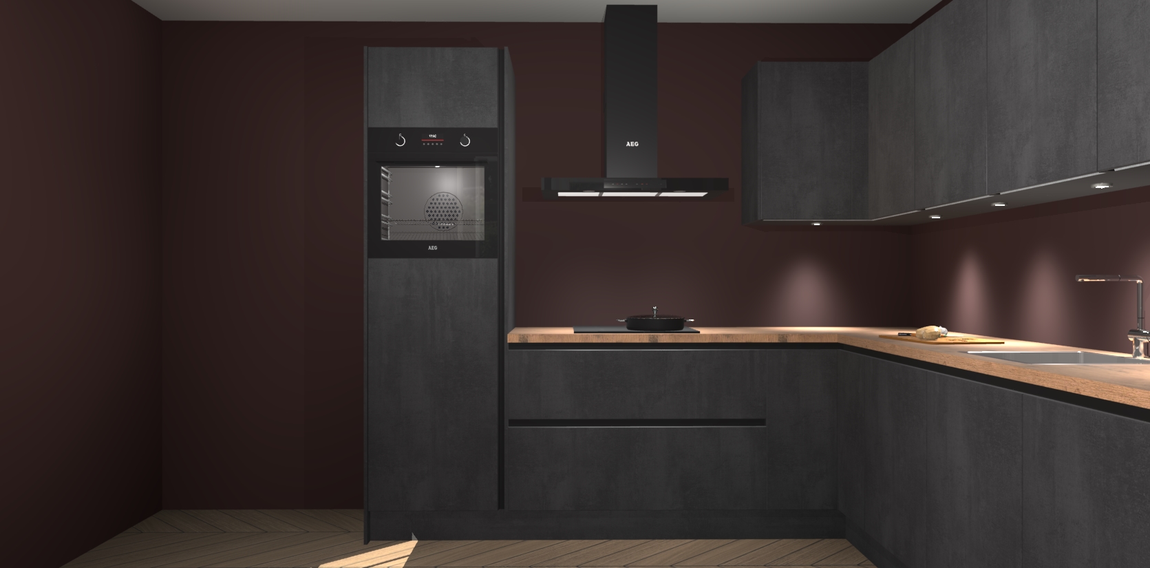 De Beton Zwarte greeploze keuken Debar is uitgerust met vijf inbouwapparaten die elke kooktaak handig en efficiënt maken. Een oven, inductiekookplaat, afzuigkap, vaatwasser en koelkast zijn standaard, maar kunnen na bestelling eenvoudig worden geupgrade naar AEG. Profiteer vervolgens van de softclose deuren voor snelle toegang en geruisloze toegang.