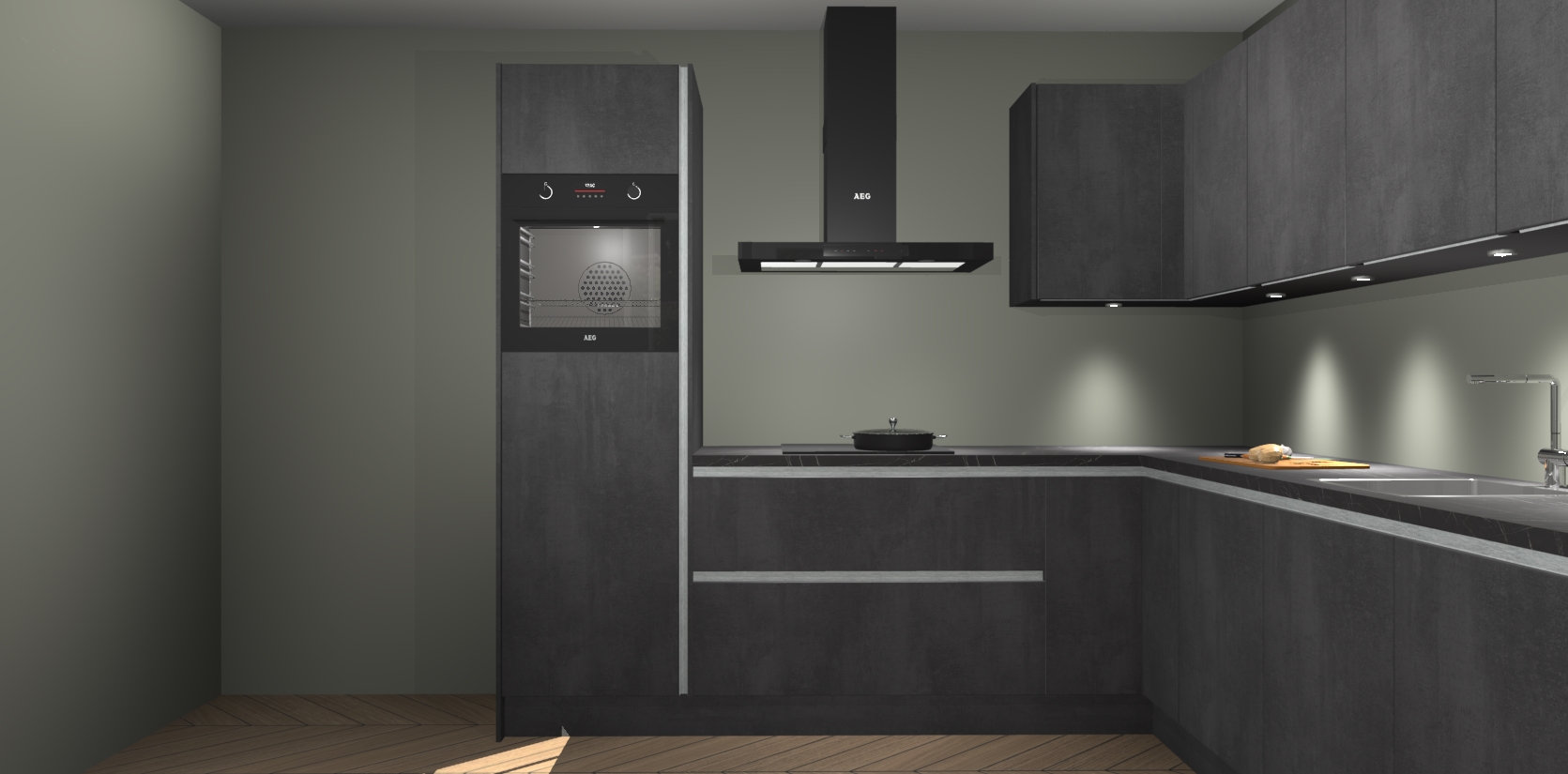 De Beton Zwarte greeploze keuken Debar is uitgerust met vijf inbouwapparaten die elke kooktaak handig en efficiënt maken. Een oven, inductiekookplaat, afzuigkap, vaatwasser en koelkast zijn standaard, maar kunnen na bestelling eenvoudig worden geupgrade naar AEG. Profiteer vervolgens van de softclose deuren voor snelle toegang en geruisloze toegang.