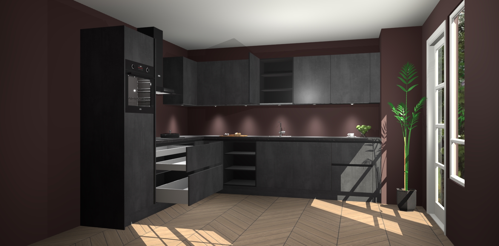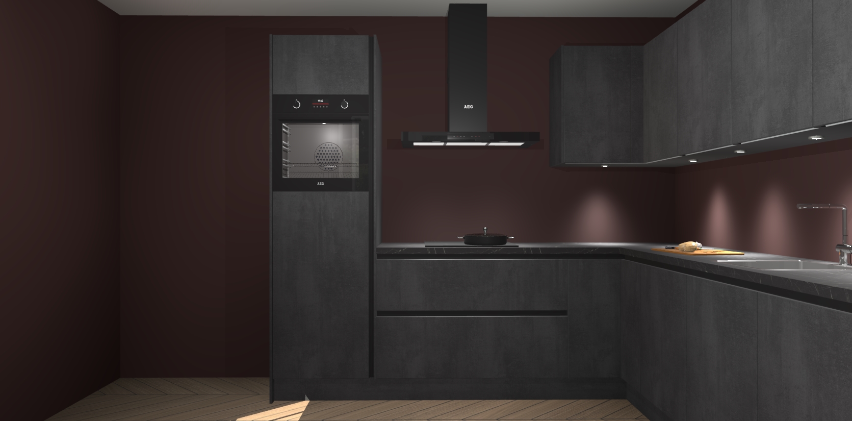 De Beton Zwarte greeploze keuken Debar is uitgerust met vijf inbouwapparaten die elke kooktaak handig en efficiënt maken. Een oven, inductiekookplaat, afzuigkap, vaatwasser en koelkast zijn standaard, maar kunnen na bestelling eenvoudig worden geupgrade naar AEG. Profiteer vervolgens van de softclose deuren voor snelle toegang en geruisloze toegang.