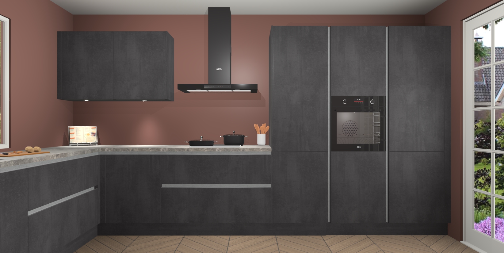 Heeft u nog apparatuur nodig? Geen probleem: de Beton Zwarte greeploze keuken Debrecen bevat vijf ingebouwde apparaten - een oven, inductiekookplaat, afzuigkap, vaatwasser en koelkast - die gemakkelijk kunnen worden bijgewerkt naar AEG na bestelling. En als dat nog niet genoeg is; onze kasten worden pre-geassembleerd geleverd en zijn verkrijgbaar tegen een vastgeroeste lage prijs! U hoeft nooit meer te zoeken naar goede kwaliteit en service want onze producten hebben echt Duitse kwaliteit.