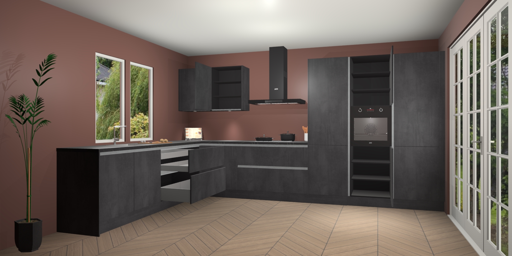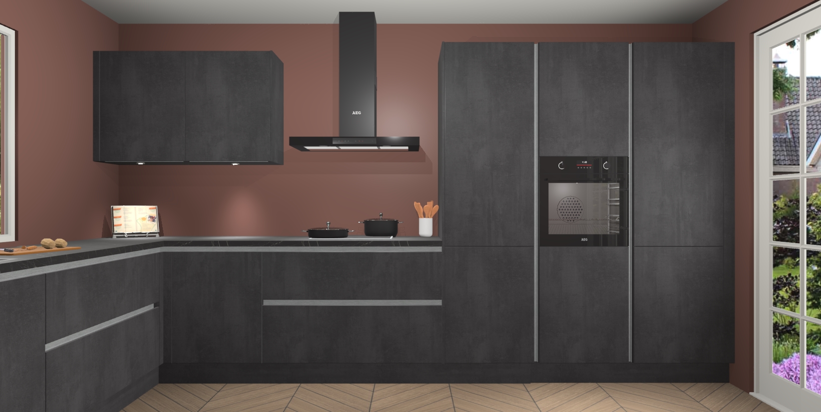 Heeft u nog apparatuur nodig? Geen probleem: de Beton Zwarte greeploze keuken Debrecen bevat vijf ingebouwde apparaten - een oven, inductiekookplaat, afzuigkap, vaatwasser en koelkast - die gemakkelijk kunnen worden bijgewerkt naar AEG na bestelling. En als dat nog niet genoeg is; onze kasten worden pre-geassembleerd geleverd en zijn verkrijgbaar tegen een vastgeroeste lage prijs! U hoeft nooit meer te zoeken naar goede kwaliteit en service want onze producten hebben echt Duitse kwaliteit.