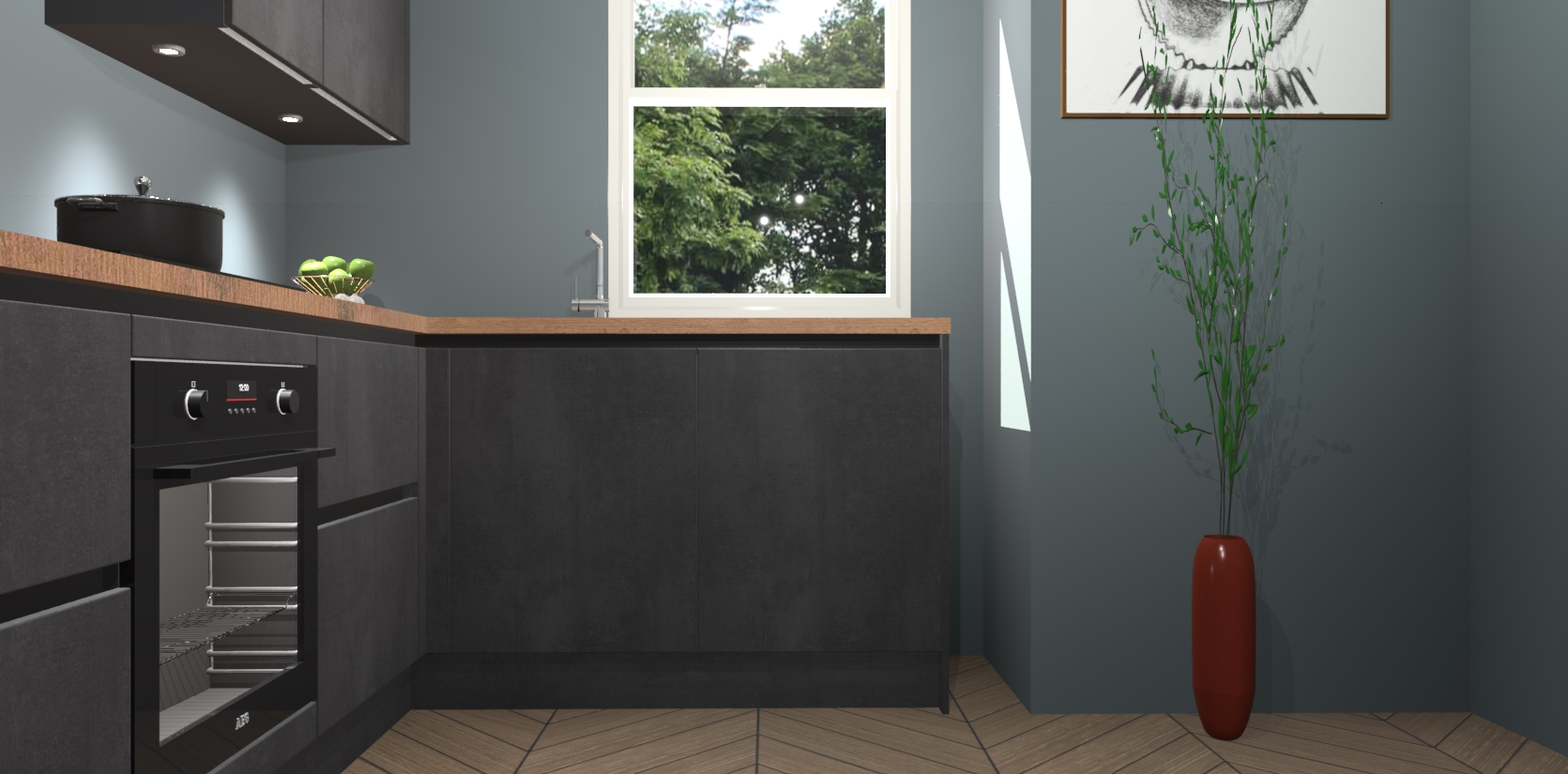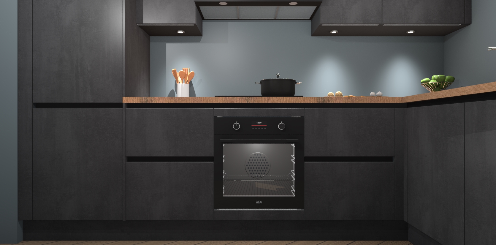 De Beton Zwarte greeploze keuken Geneve is uitgerust met 5 inbouwapparaten - een oven, inductiekookplaat, afzuigkap, vaatwasser en koelkast - voor al uw kook- en bewaarbehoeftes. U kunt deze apparaten desgewenst eenvoudig upgraden naar AEG of de oven omruilen voor een combimagnetron na het plaatsen van uw bestelling. En met de soft close deuren, voldoende opbergruimte en kasten die voorgemonteerd worden geleverd, bent u in een mum van tijd klaar om heerlijke maaltijden te bereiden!