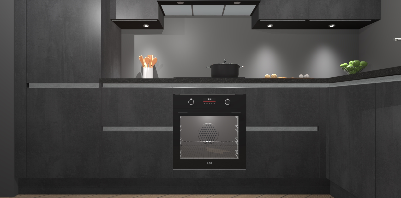 De Beton Zwarte greeploze keuken Geneve is uitgerust met 5 inbouwapparaten - een oven, inductiekookplaat, afzuigkap, vaatwasser en koelkast - voor al uw kook- en bewaarbehoeftes. U kunt deze apparaten desgewenst eenvoudig upgraden naar AEG of de oven omruilen voor een combimagnetron na het plaatsen van uw bestelling. En met de soft close deuren, voldoende opbergruimte en kasten die voorgemonteerd worden geleverd, bent u in een mum van tijd klaar om heerlijke maaltijden te bereiden!
