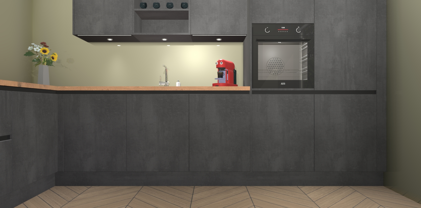 Inclusief plinten, stelpoten en werkblad
