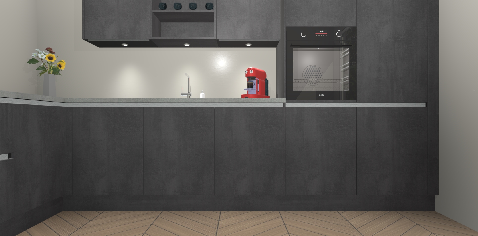 Inclusief plinten, stelpoten en werkblad