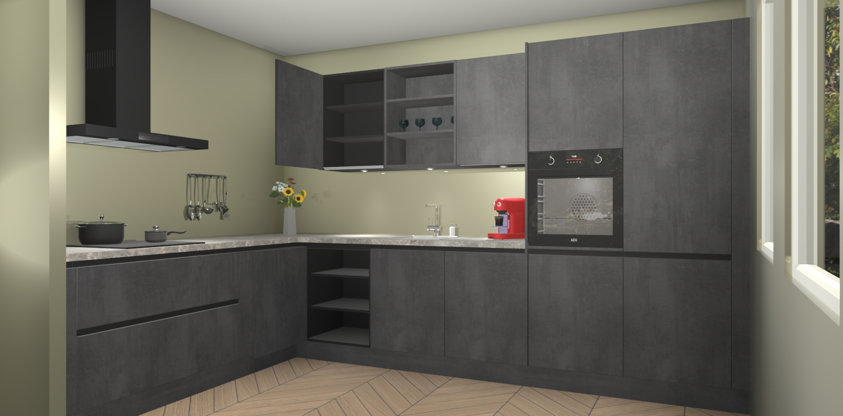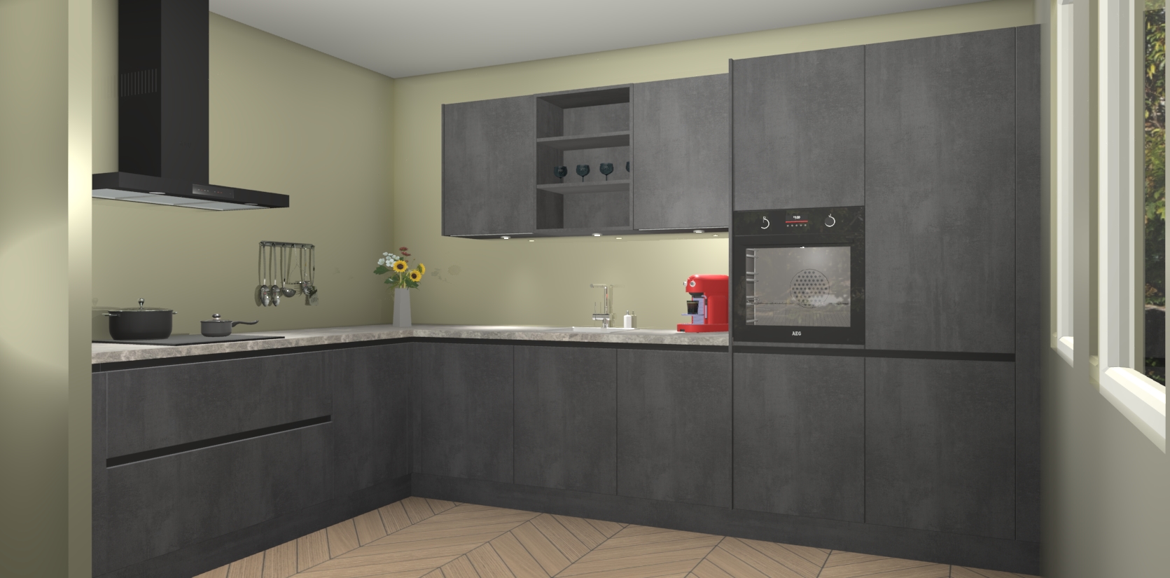 Dus waarom zou u wachten? Maak u klaar om bijeenkomsten voor familie en vrienden te organiseren en verblind ze met de stijlvol luxueuze Beton Zwarte greeploze keuken Gotenburg! Met veel opbergruimte in een fractie van de tijd en een prijs die geen compromis in kwaliteit vereist - dit is misschien wel het meest decadente keukenkoopje dat er is!