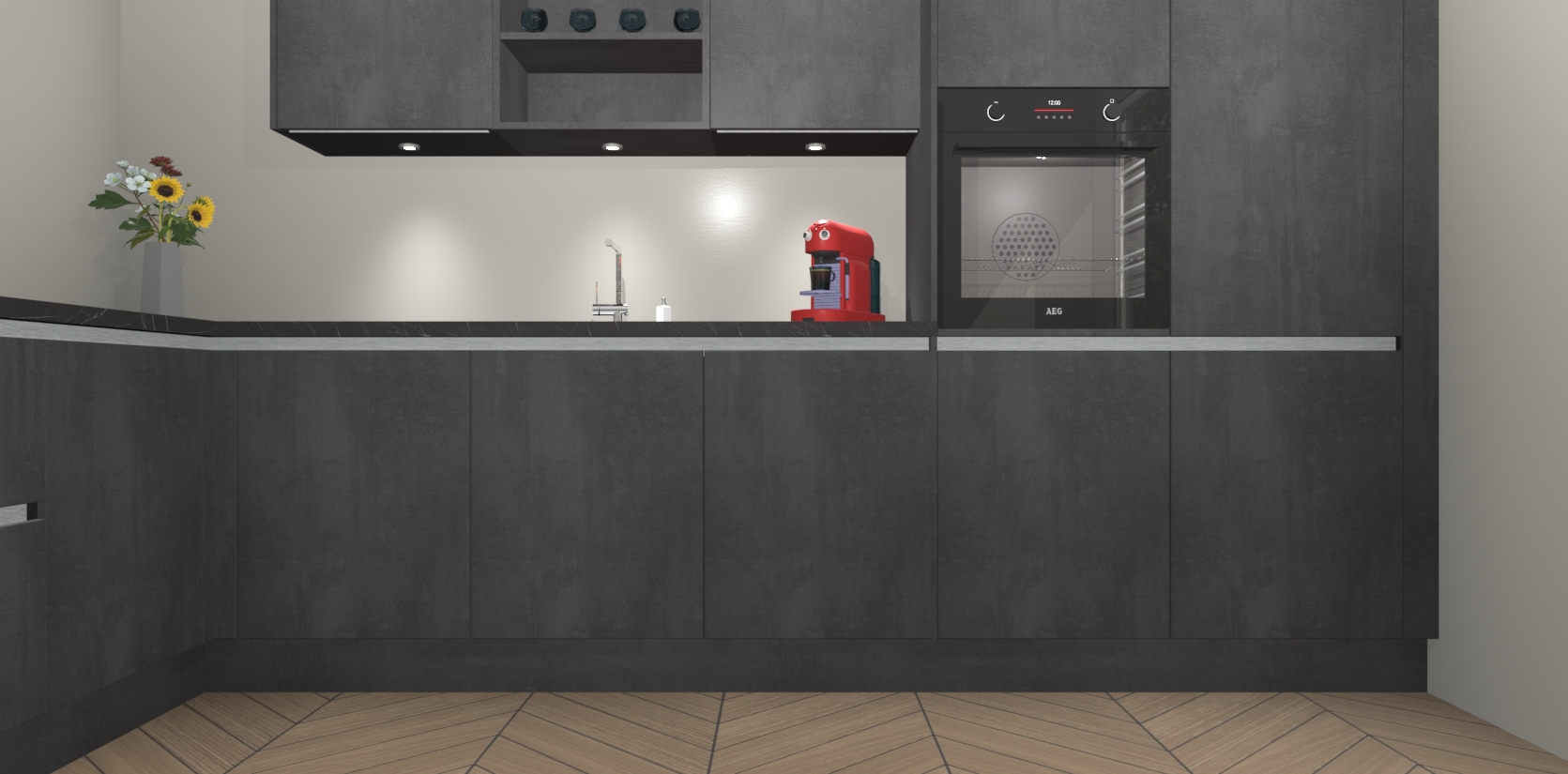 Inclusief plinten, stelpoten en werkblad
