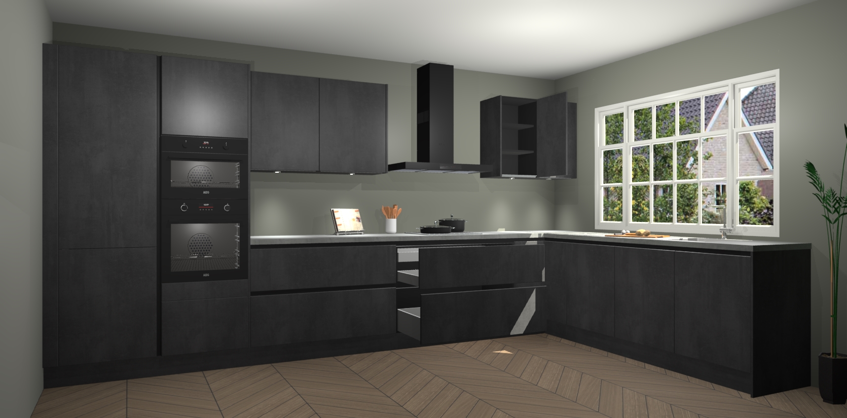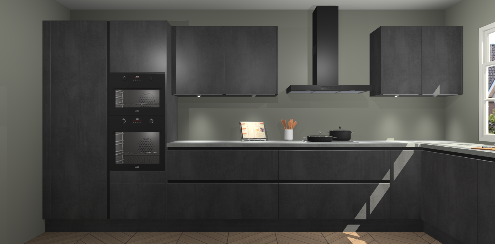 Heeft u nog apparatuur nodig? Geen probleem: de beton zwarte greeploze keuken Graz bevat vijf ingebouwde apparaten - een oven, inductiekookplaat, afzuigkap, vaatwasser en koelkast - die gemakkelijk kunnen worden bijgewerkt naar AEG na bestelling. En als dat nog niet genoeg is; onze kasten worden pre-geassembleerd geleverd en zijn verkrijgbaar tegen een vastgeroeste lage prijs! U hoeft nooit meer te zoeken naar goede kwaliteit en service want onze producten hebben echt Duitse kwaliteit.
