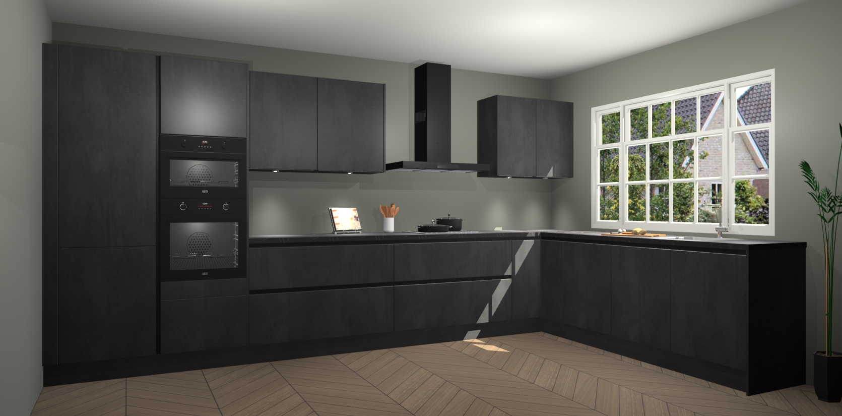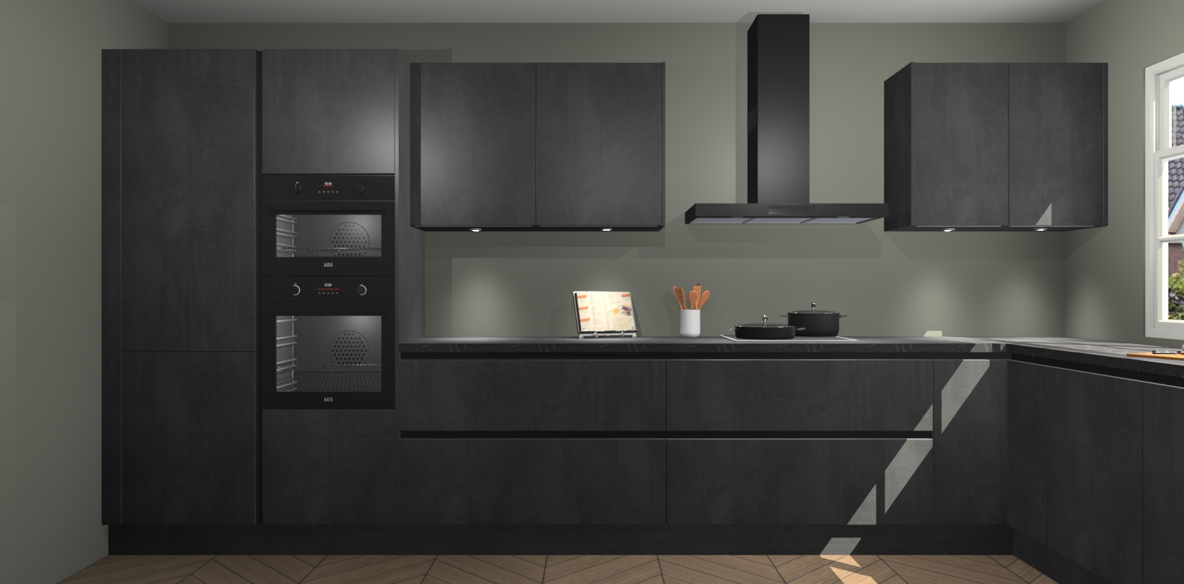 Heeft u nog apparatuur nodig? Geen probleem: de beton zwarte greeploze keuken Graz bevat vijf ingebouwde apparaten - een oven, inductiekookplaat, afzuigkap, vaatwasser en koelkast - die gemakkelijk kunnen worden bijgewerkt naar AEG na bestelling. En als dat nog niet genoeg is; onze kasten worden pre-geassembleerd geleverd en zijn verkrijgbaar tegen een vastgeroeste lage prijs! U hoeft nooit meer te zoeken naar goede kwaliteit en service want onze producten hebben echt Duitse kwaliteit.