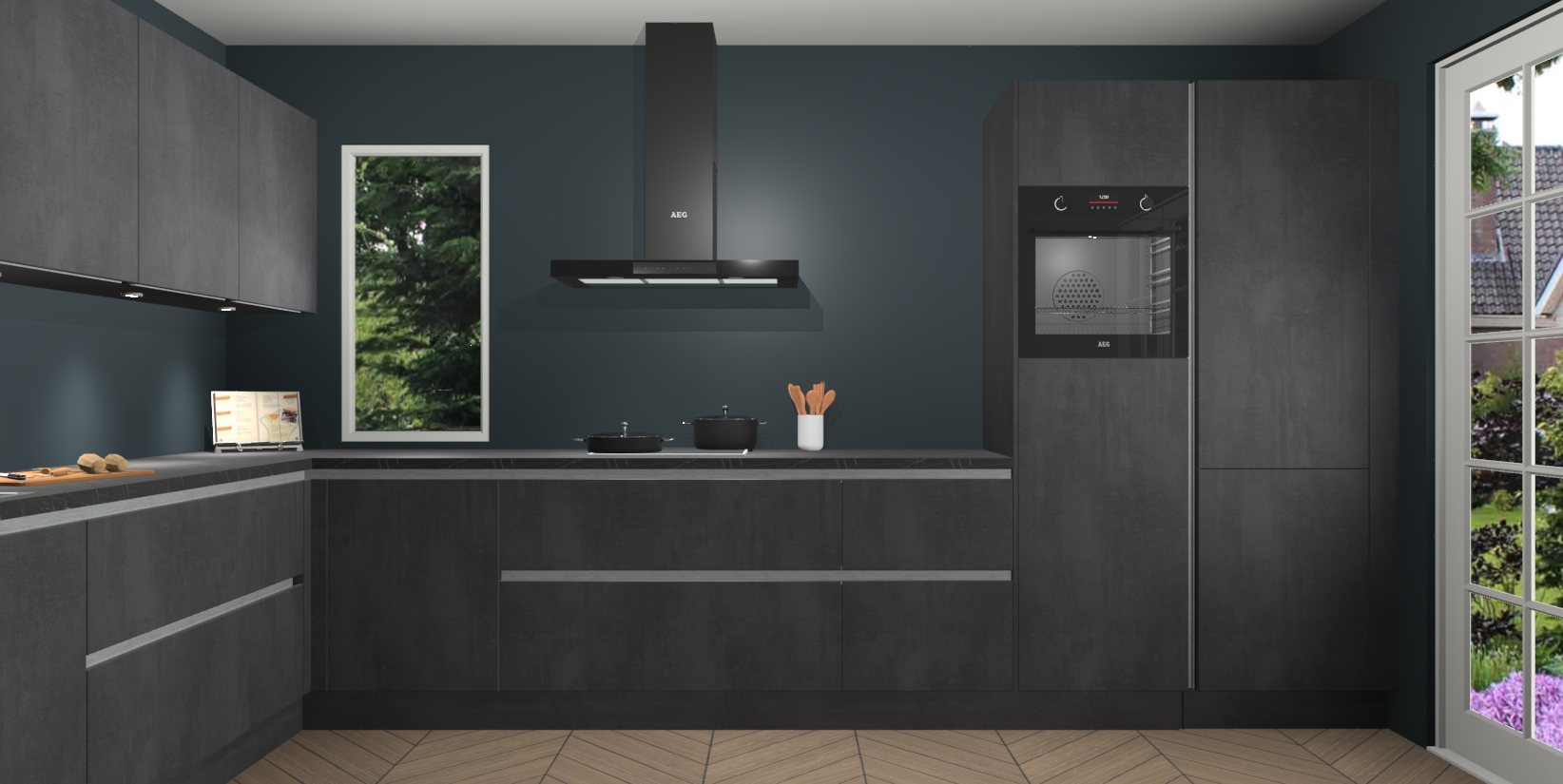 Heeft u nog apparatuur nodig? Geen probleem: de beton zwarte greeploze keuken Harare bevat vijf ingebouwde apparaten - een oven, inductiekookplaat, afzuigkap, vaatwasser en koelkast - die gemakkelijk kunnen worden bijgewerkt naar AEG na bestelling. En als dat nog niet genoeg is; onze kasten worden pre-geassembleerd geleverd en zijn verkrijgbaar tegen een vastgeroeste lage prijs! U hoeft nooit meer te zoeken naar goede kwaliteit en service want onze producten hebben echt Duitse kwaliteit.