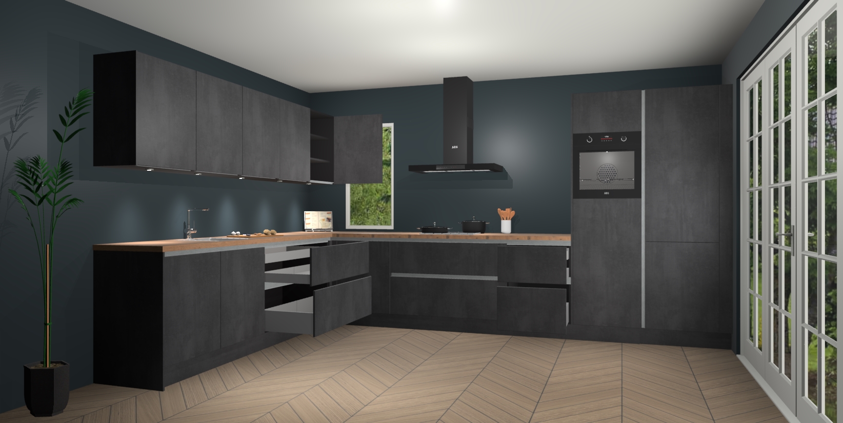 Heeft u nog apparatuur nodig? Geen probleem: de beton zwarte greeploze keuken Harare bevat vijf ingebouwde apparaten - een oven, inductiekookplaat, afzuigkap, vaatwasser en koelkast - die gemakkelijk kunnen worden bijgewerkt naar AEG na bestelling. En als dat nog niet genoeg is; onze kasten worden pre-geassembleerd geleverd en zijn verkrijgbaar tegen een vastgeroeste lage prijs! U hoeft nooit meer te zoeken naar goede kwaliteit en service want onze producten hebben echt Duitse kwaliteit.