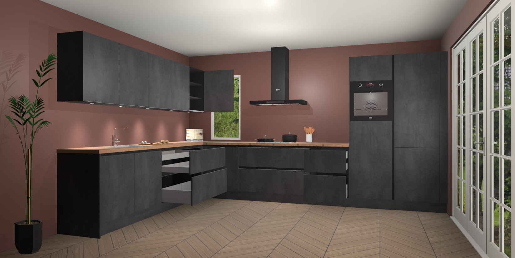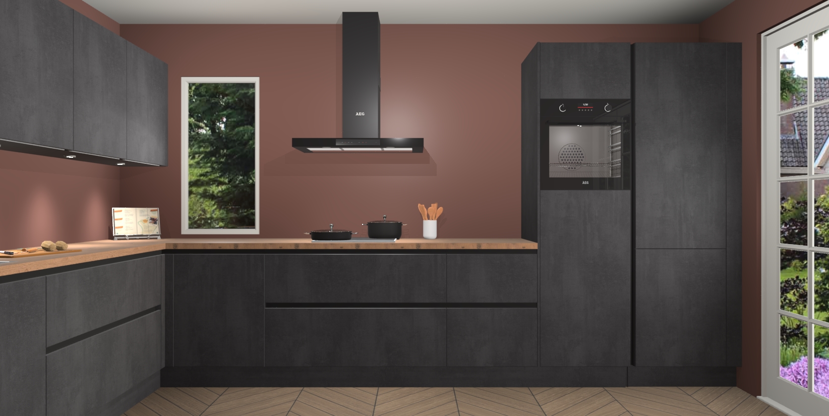 Heeft u nog apparatuur nodig? Geen probleem: de beton zwarte greeploze keuken Harare bevat vijf ingebouwde apparaten - een oven, inductiekookplaat, afzuigkap, vaatwasser en koelkast - die gemakkelijk kunnen worden bijgewerkt naar AEG na bestelling. En als dat nog niet genoeg is; onze kasten worden pre-geassembleerd geleverd en zijn verkrijgbaar tegen een vastgeroeste lage prijs! U hoeft nooit meer te zoeken naar goede kwaliteit en service want onze producten hebben echt Duitse kwaliteit.