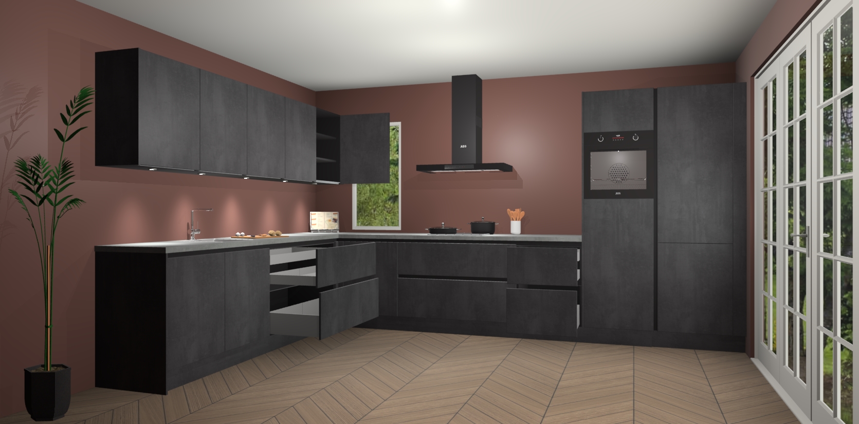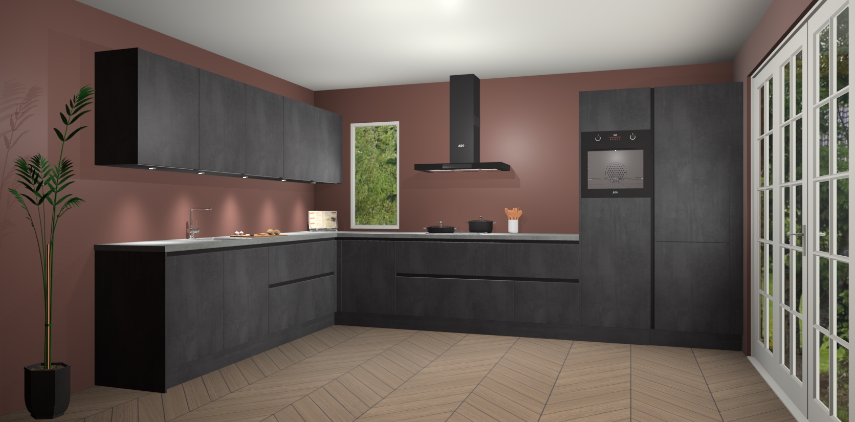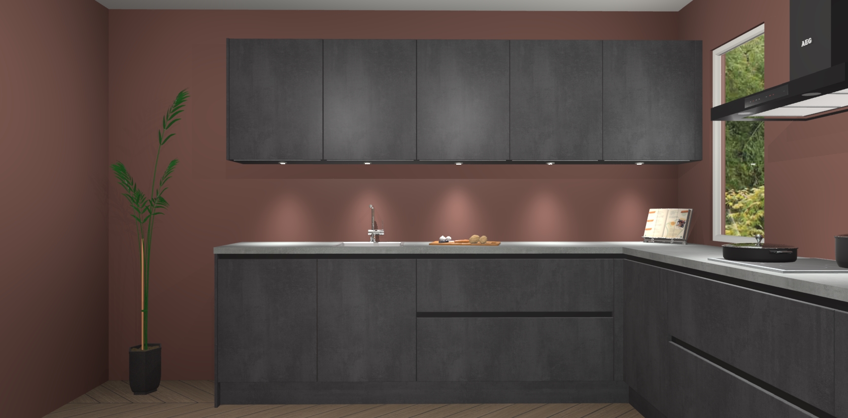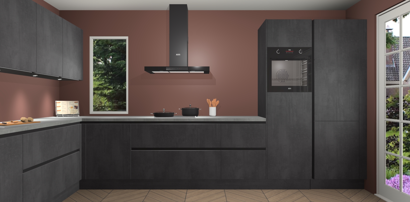 Heeft u nog apparatuur nodig? Geen probleem: de beton zwarte greeploze keuken Harare bevat vijf ingebouwde apparaten - een oven, inductiekookplaat, afzuigkap, vaatwasser en koelkast - die gemakkelijk kunnen worden bijgewerkt naar AEG na bestelling. En als dat nog niet genoeg is; onze kasten worden pre-geassembleerd geleverd en zijn verkrijgbaar tegen een vastgeroeste lage prijs! U hoeft nooit meer te zoeken naar goede kwaliteit en service want onze producten hebben echt Duitse kwaliteit.