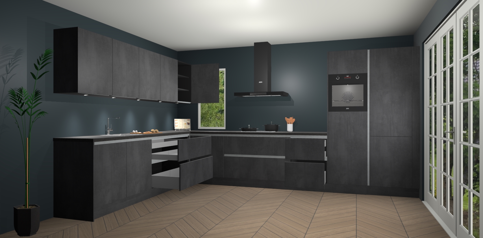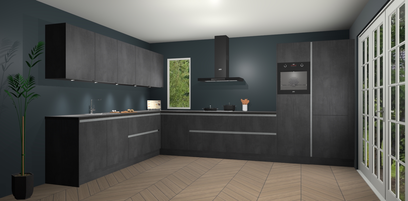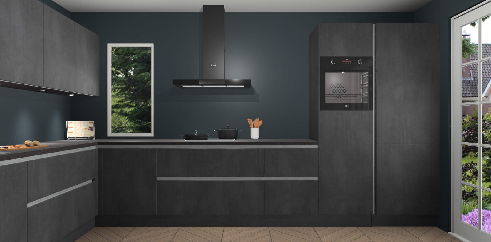 Heeft u nog apparatuur nodig? Geen probleem: de beton zwarte greeploze keuken Harare bevat vijf ingebouwde apparaten - een oven, inductiekookplaat, afzuigkap, vaatwasser en koelkast - die gemakkelijk kunnen worden bijgewerkt naar AEG na bestelling. En als dat nog niet genoeg is; onze kasten worden pre-geassembleerd geleverd en zijn verkrijgbaar tegen een vastgeroeste lage prijs! U hoeft nooit meer te zoeken naar goede kwaliteit en service want onze producten hebben echt Duitse kwaliteit.