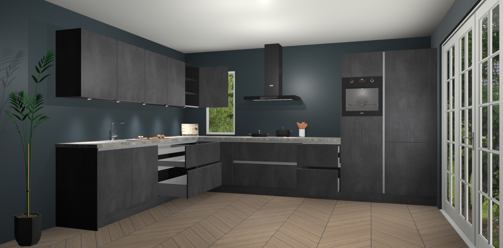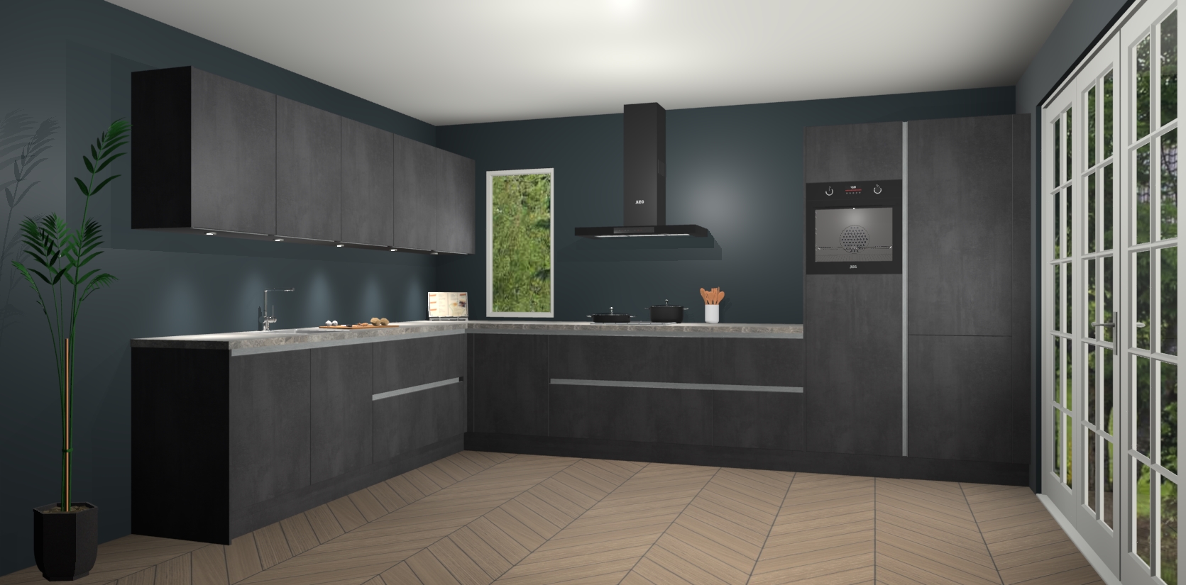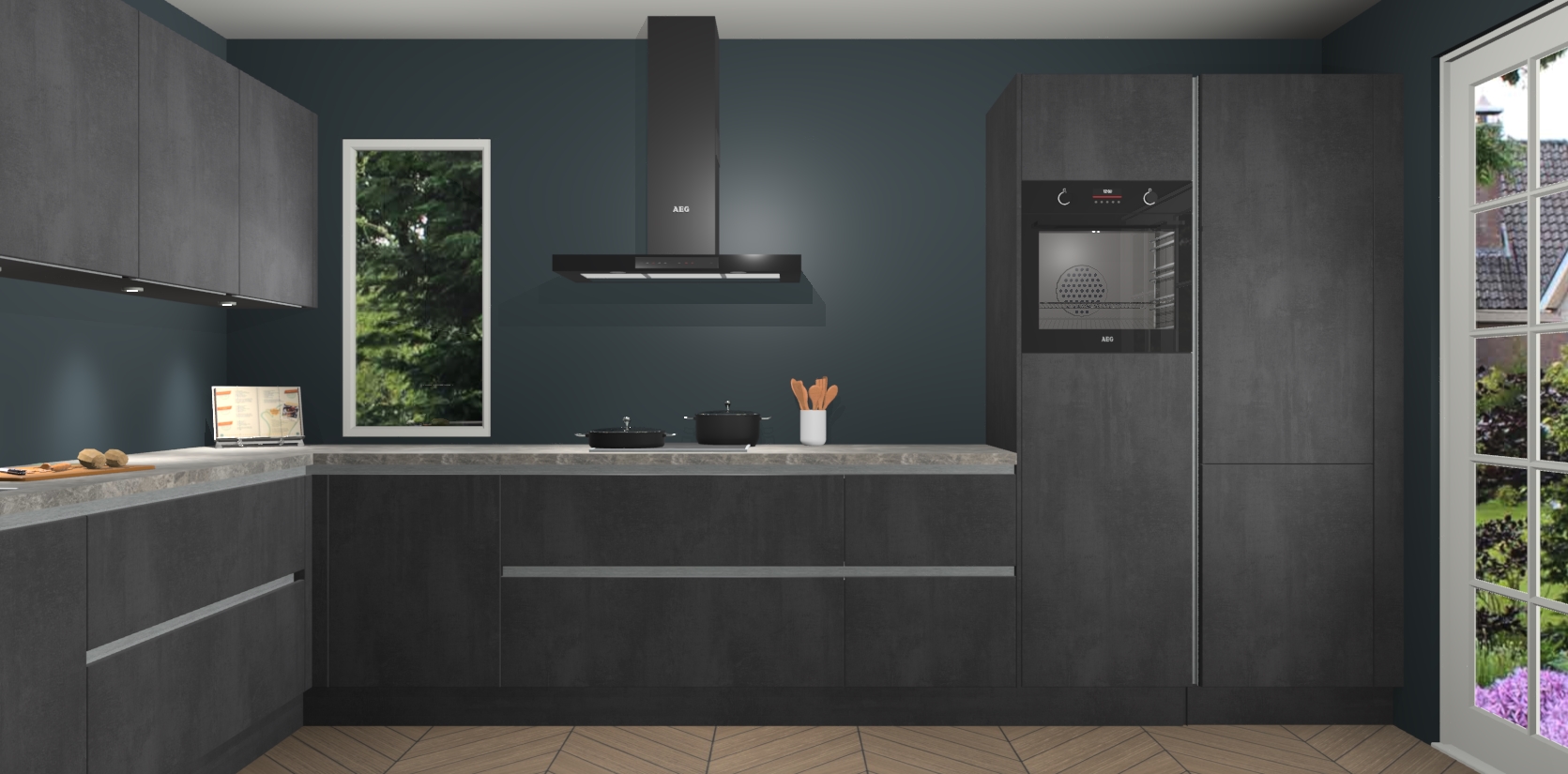 Heeft u nog apparatuur nodig? Geen probleem: de beton zwarte greeploze keuken Harare bevat vijf ingebouwde apparaten - een oven, inductiekookplaat, afzuigkap, vaatwasser en koelkast - die gemakkelijk kunnen worden bijgewerkt naar AEG na bestelling. En als dat nog niet genoeg is; onze kasten worden pre-geassembleerd geleverd en zijn verkrijgbaar tegen een vastgeroeste lage prijs! U hoeft nooit meer te zoeken naar goede kwaliteit en service want onze producten hebben echt Duitse kwaliteit.