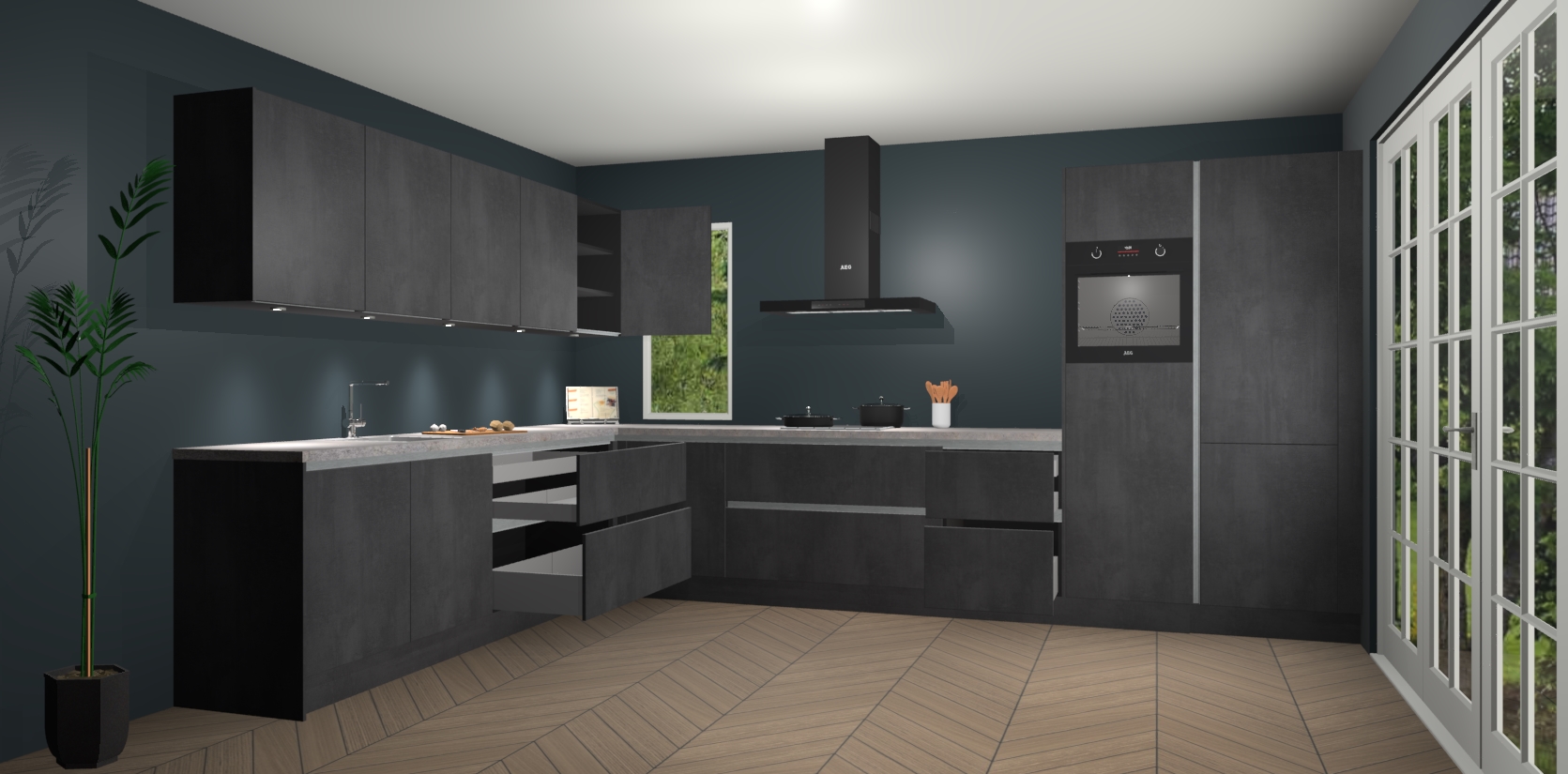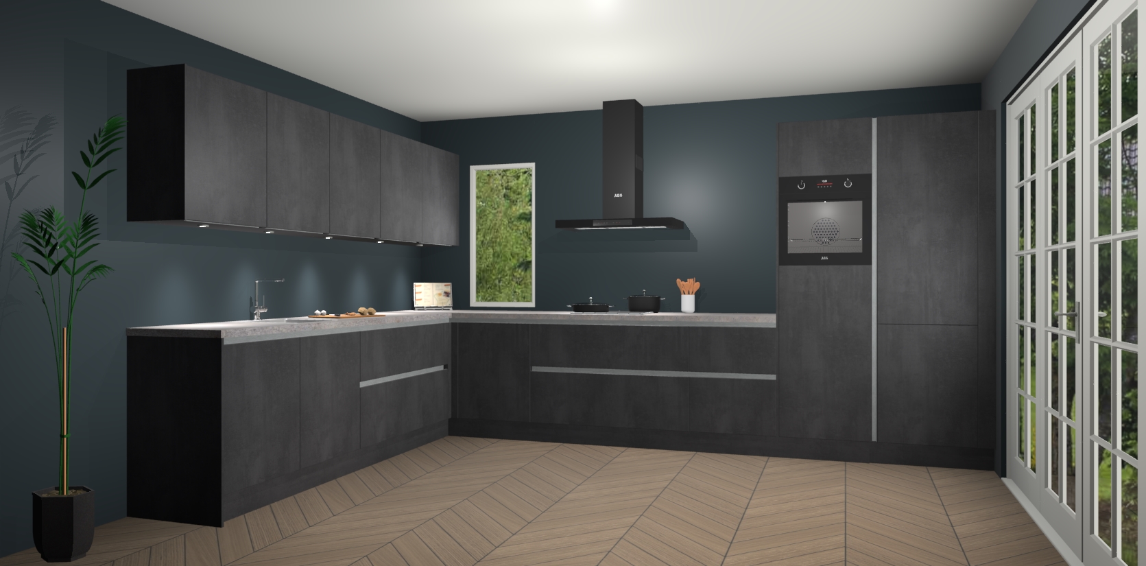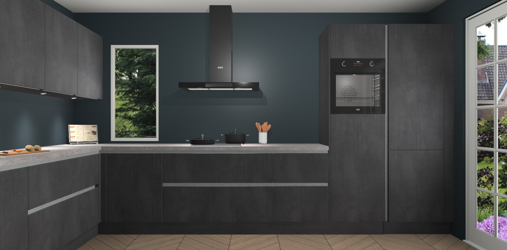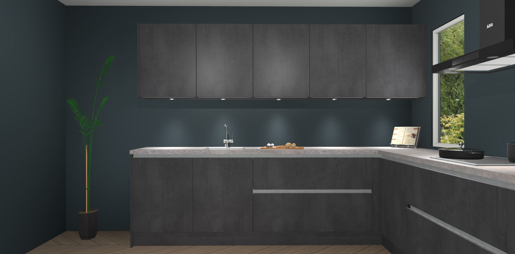 Heeft u nog apparatuur nodig? Geen probleem: de beton zwarte greeploze keuken Harare bevat vijf ingebouwde apparaten - een oven, inductiekookplaat, afzuigkap, vaatwasser en koelkast - die gemakkelijk kunnen worden bijgewerkt naar AEG na bestelling. En als dat nog niet genoeg is; onze kasten worden pre-geassembleerd geleverd en zijn verkrijgbaar tegen een vastgeroeste lage prijs! U hoeft nooit meer te zoeken naar goede kwaliteit en service want onze producten hebben echt Duitse kwaliteit.