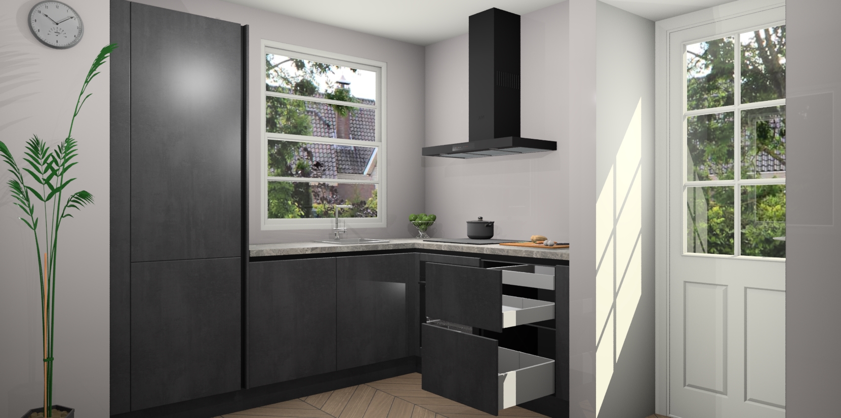 Daarnaast kunt u rekenen op premium Duits kwaliteit. En misschien wel het allerbeste nieuws; als u nu bestelt kan de Beton Zwarte greeploze keuken Harbin binnen 7 weken worden geleverd met een vast laag prijsje! Mis deze luxe greeploze keuken niet - ontworpen voor minimalisme en maximale stijl! De Beton Zwarte greeploze keuken Harbin biedt superieure kwaliteit voor een onklopbare prijs - binnen 7 weken kan deze stijlvolle ruimte van u zijn!
