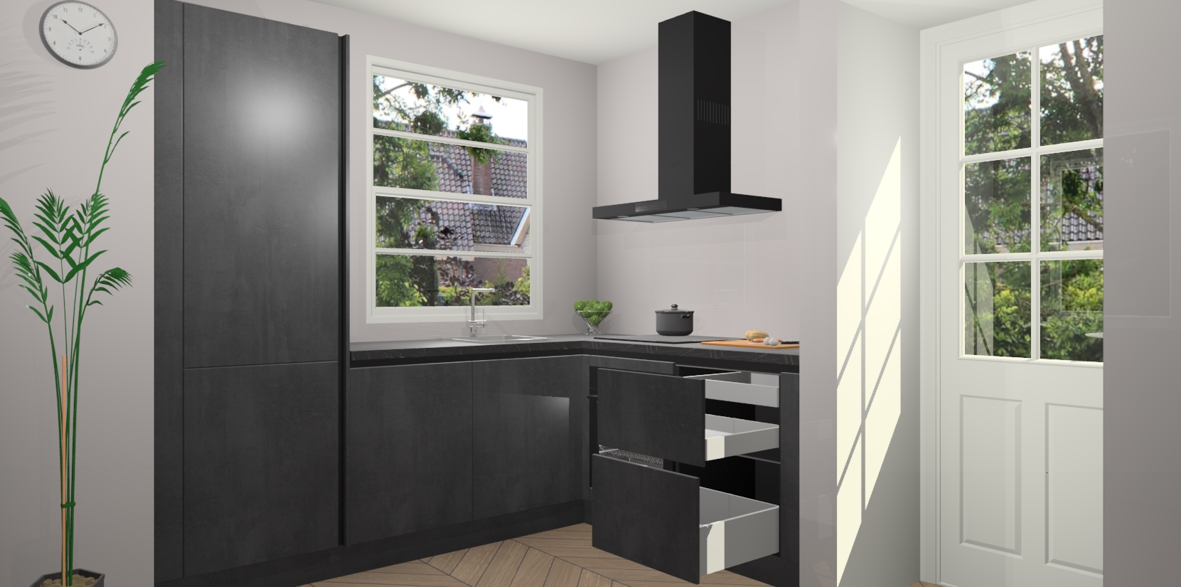 Daarnaast kunt u rekenen op premium Duits kwaliteit. En misschien wel het allerbeste nieuws; als u nu bestelt kan de Beton Zwarte greeploze keuken Harbin binnen 7 weken worden geleverd met een vast laag prijsje! Mis deze luxe greeploze keuken niet - ontworpen voor minimalisme en maximale stijl! De Beton Zwarte greeploze keuken Harbin biedt superieure kwaliteit voor een onklopbare prijs - binnen 7 weken kan deze stijlvolle ruimte van u zijn!