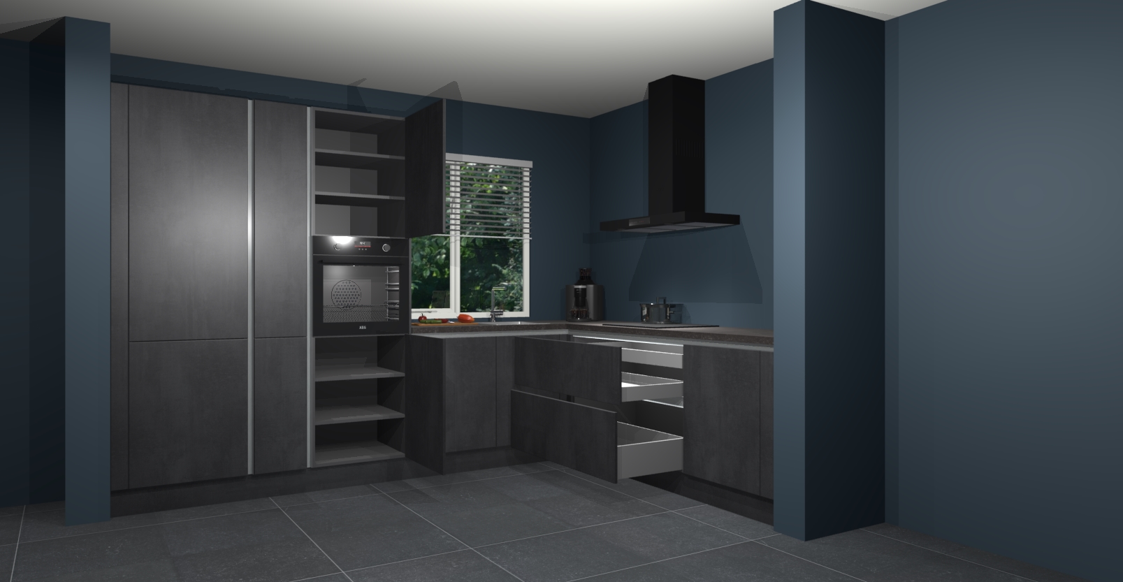 En dat is nog niet alles - de Beton zwarte keuken India wordt ook heel snel geleverd met 7 weken! De prijs is vastgesteld zodat u nooit onaangenaam verrast word door onverwachte kosten. Al binnen twee maanden kunt u beginnen te genieten van optimale functionaliteit in luxueuze stijl - wat wilt u nog meer? Bestel nu uw Beton zwarte keuken India en ervaar ongekende flexibiliteit en stijlvol design!