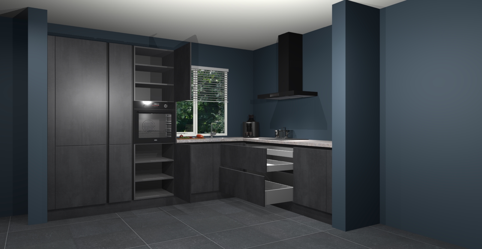 En dat is nog niet alles - de Beton zwarte keuken India wordt ook heel snel geleverd met 7 weken! De prijs is vastgesteld zodat u nooit onaangenaam verrast word door onverwachte kosten. Al binnen twee maanden kunt u beginnen te genieten van optimale functionaliteit in luxueuze stijl - wat wilt u nog meer? Bestel nu uw Beton zwarte keuken India en ervaar ongekende flexibiliteit en stijlvol design!