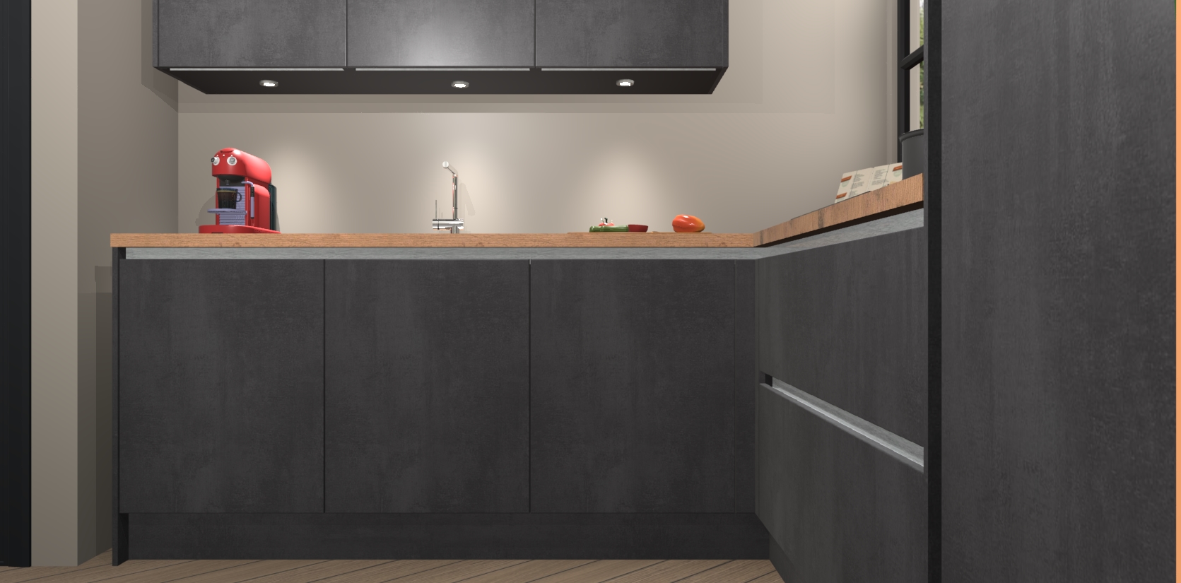 Inclusief plinten, stelpoten en werkblad