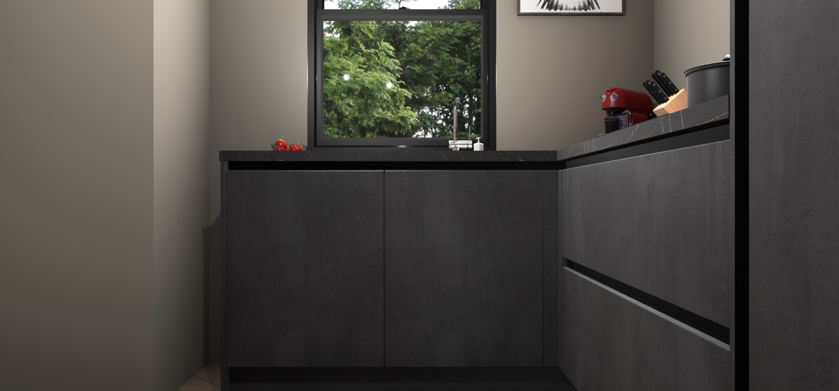 Als u op zoek bent naar de perfecte keuken om uw huis die luxe, moderne uitstraling te geven met een warme en gezellige touch, dan is uw zoektocht voorbij! Maak kennis met de Beton Zwarte greeploze keuken Kinshasa.