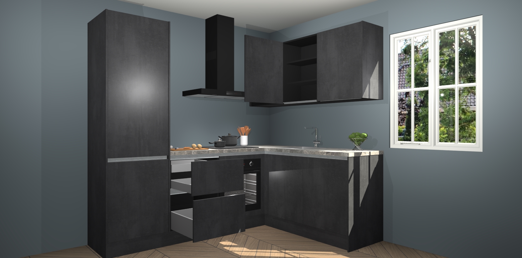 Bestellen was nog nooit zo makkelijk en we leveren met slechts 7 weken; zodra de keuken arriveert staan de kasten voor gemonteerd klaar om er alles aan te doen dat u hem gemakkelijk zelf kunt installeren! Eén ding is zeker: met de Beton Zwarte greeploze keuken Krakau slaagt u erin modischer, modernere keukens uit te rusten die tientallen jaren meegaan! Haal snel uw Beton Zwarte greeploze keuken Krakau - of u nu net begint of al 'levenservaring' hebt in de keukendroomloopbaan - want dit topmodel van onze collectie wilt u absoluut niet missen.