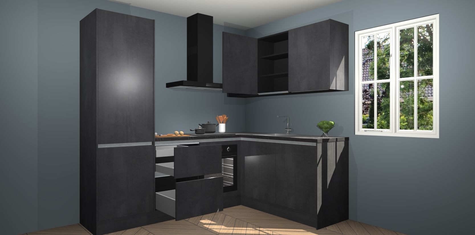 Bestellen was nog nooit zo makkelijk en we leveren met slechts 7 weken; zodra de keuken arriveert staan de kasten voor gemonteerd klaar om er alles aan te doen dat u hem gemakkelijk zelf kunt installeren! Eén ding is zeker: met de Beton Zwarte greeploze keuken Krakau slaagt u erin modischer, modernere keukens uit te rusten die tientallen jaren meegaan! Haal snel uw Beton Zwarte greeploze keuken Krakau - of u nu net begint of al 'levenservaring' hebt in de keukendroomloopbaan - want dit topmodel van onze collectie wilt u absoluut niet missen.