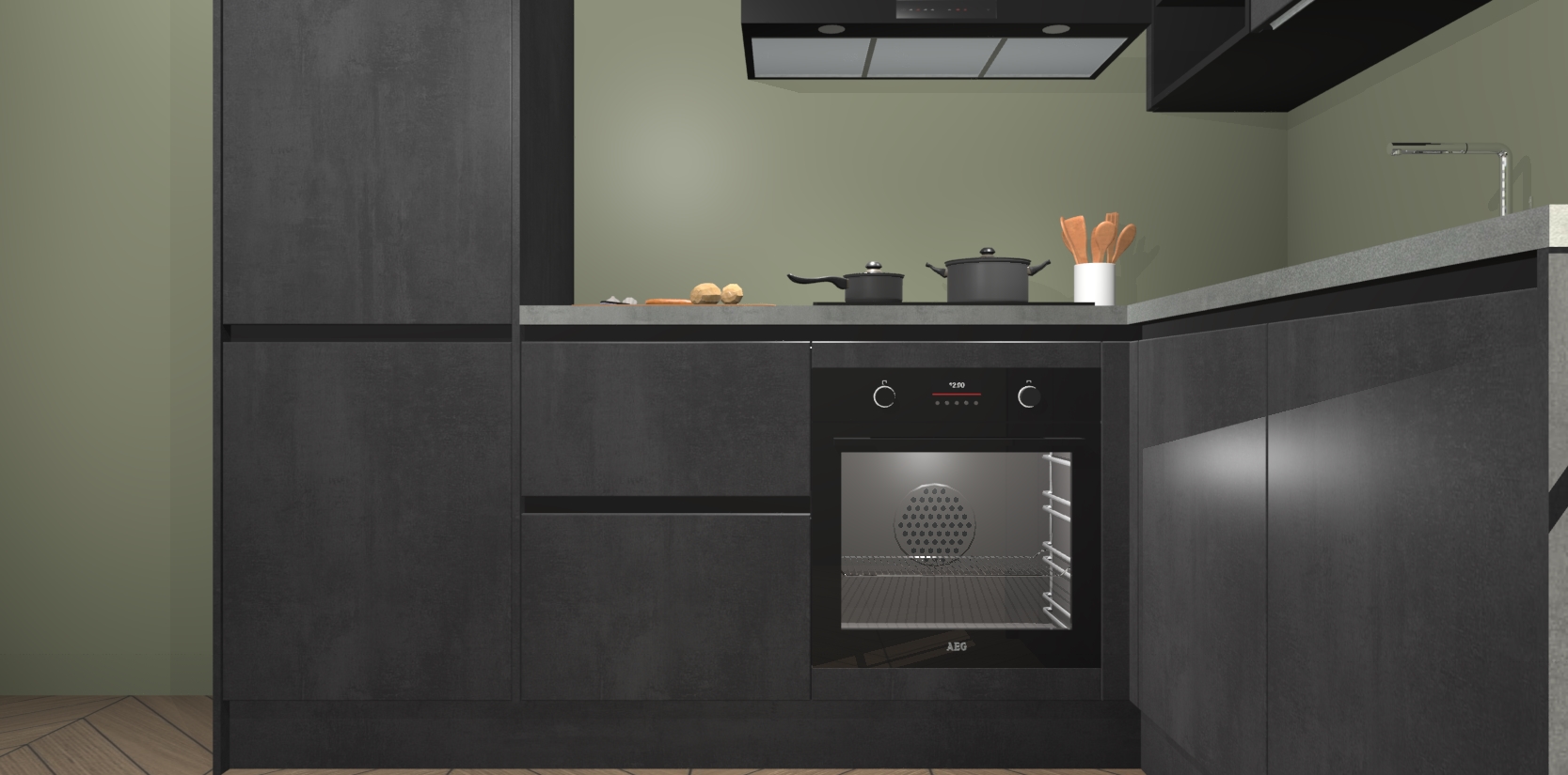 Dit model biedt u voldoende opbergruimte en vijf ingebouwde apparaten: een oven, inductiekookplaat, afzuigkap, vaatwasser en koelkast. Deze apparaten kunnen gemakkelijk worden geüpgrade naar AEG nadat u besteld heeft. De verschillende laden en kastjes bevatten softclose-deuren waardoor ze gezellig dichtvallen met een geruststellend helemaal geruisloos geluid. En dat is nog niet alles! We garanderen ook dat de prijs altijd laag blijft - dus haal nu uw Beton Zwarte greeploze keuken Krakau terwijl het kan.