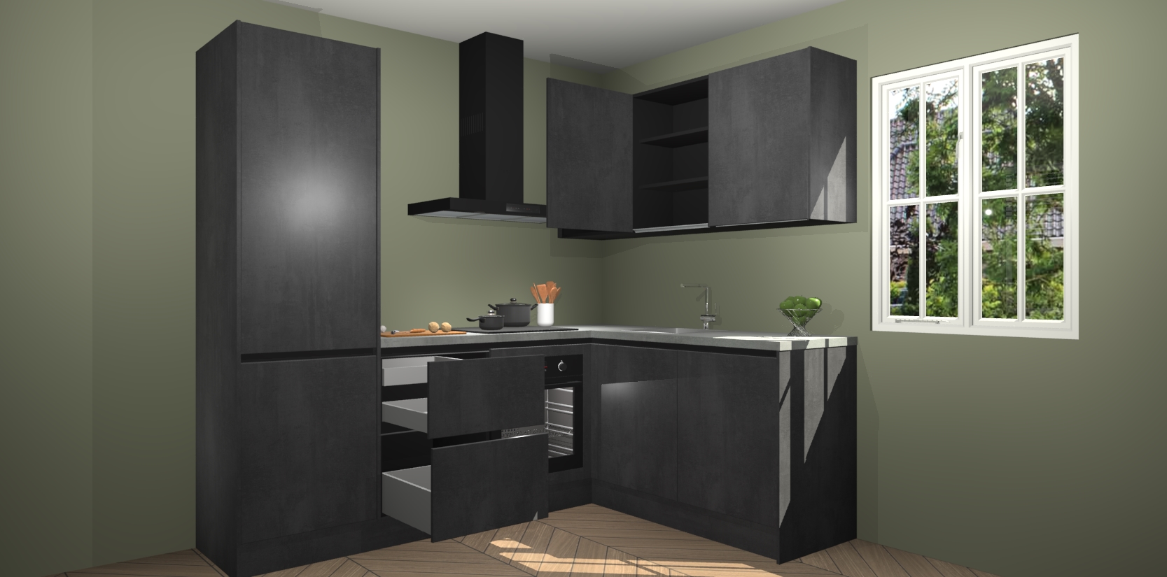 Bestellen was nog nooit zo makkelijk en we leveren met slechts 7 weken; zodra de keuken arriveert staan de kasten voor gemonteerd klaar om er alles aan te doen dat u hem gemakkelijk zelf kunt installeren! Eén ding is zeker: met de Beton Zwarte greeploze keuken Krakau slaagt u erin modischer, modernere keukens uit te rusten die tientallen jaren meegaan! Haal snel uw Beton Zwarte greeploze keuken Krakau - of u nu net begint of al 'levenservaring' hebt in de keukendroomloopbaan - want dit topmodel van onze collectie wilt u absoluut niet missen.
