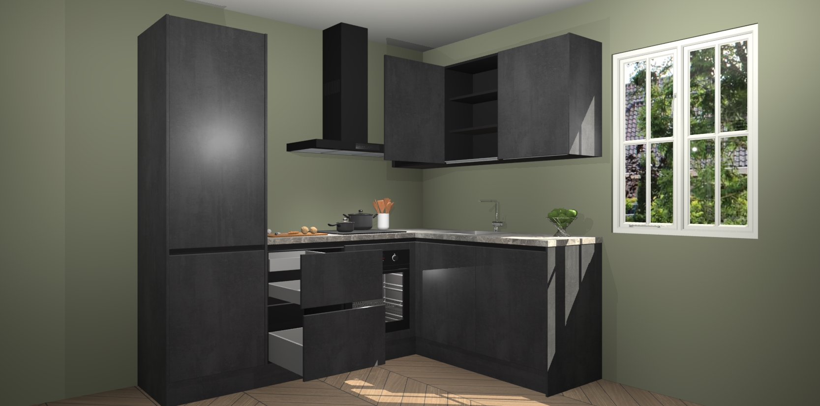 Bestellen was nog nooit zo makkelijk en we leveren met slechts 7 weken; zodra de keuken arriveert staan de kasten voor gemonteerd klaar om er alles aan te doen dat u hem gemakkelijk zelf kunt installeren! Eén ding is zeker: met de Beton Zwarte greeploze keuken Krakau slaagt u erin modischer, modernere keukens uit te rusten die tientallen jaren meegaan! Haal snel uw Beton Zwarte greeploze keuken Krakau - of u nu net begint of al 'levenservaring' hebt in de keukendroomloopbaan - want dit topmodel van onze collectie wilt u absoluut niet missen.