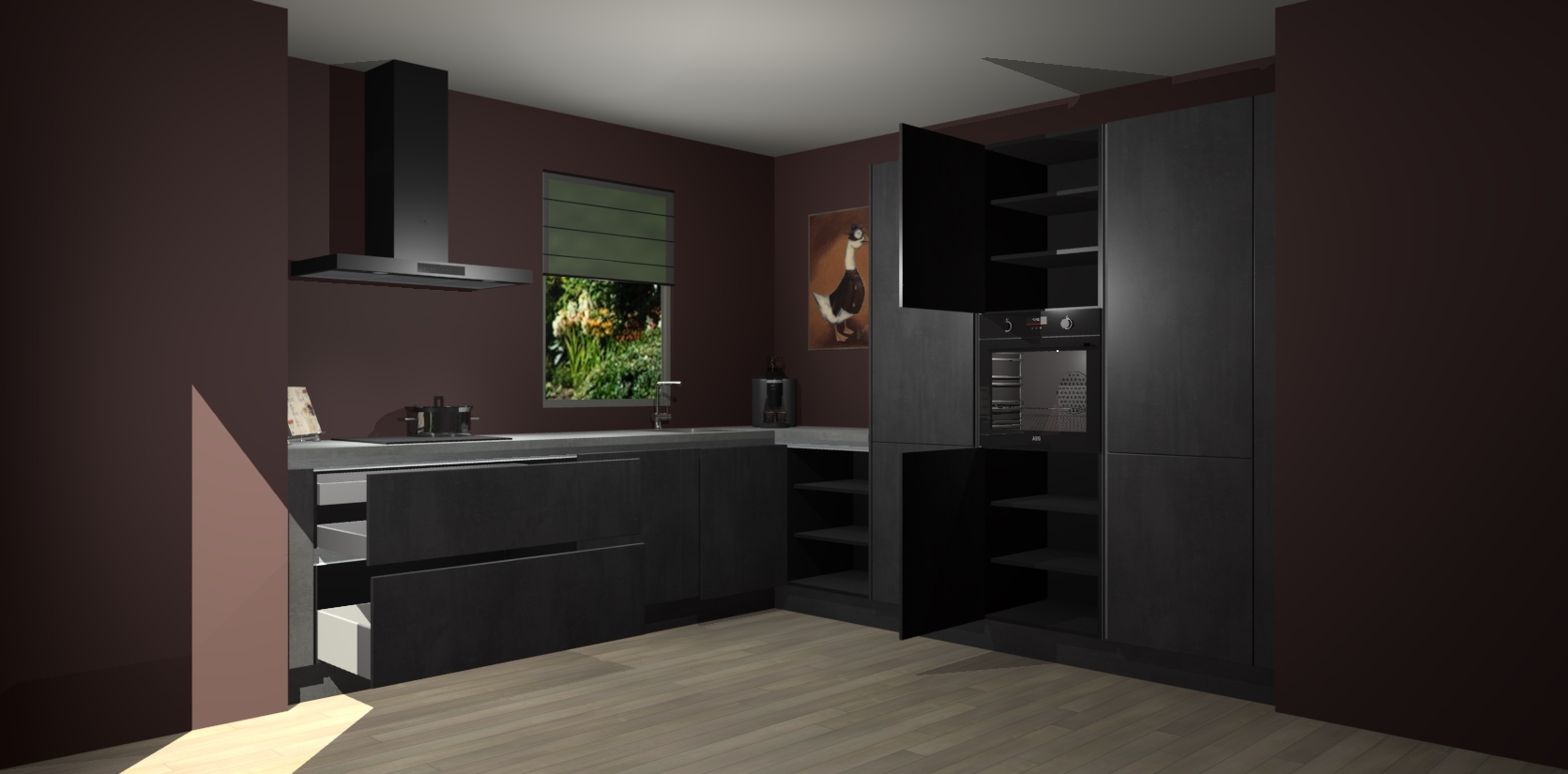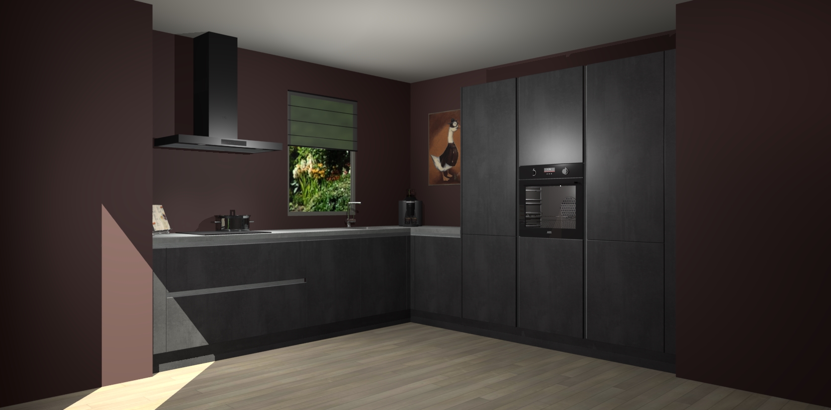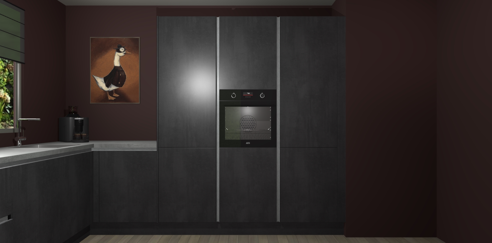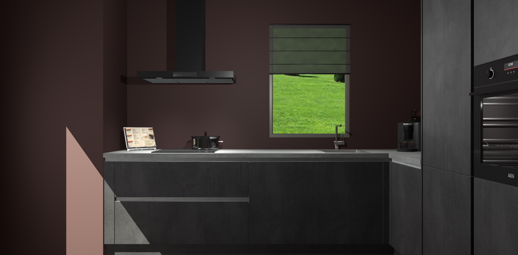 Welkom bij de Beton Zwarte greeploze keuken Laos. Deze prachtige keuken zal de komende jaren het middelpunt van de belangstelling in uw huis zijn. Uitgerust met vijf inbouwapparaten komt u nooit kookgereedschap tekort. Bovendien geeft de warme houtlook elke ruimte een uitnodigende en tijdloze uitstraling.