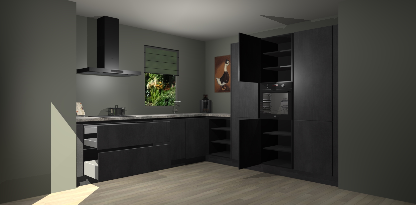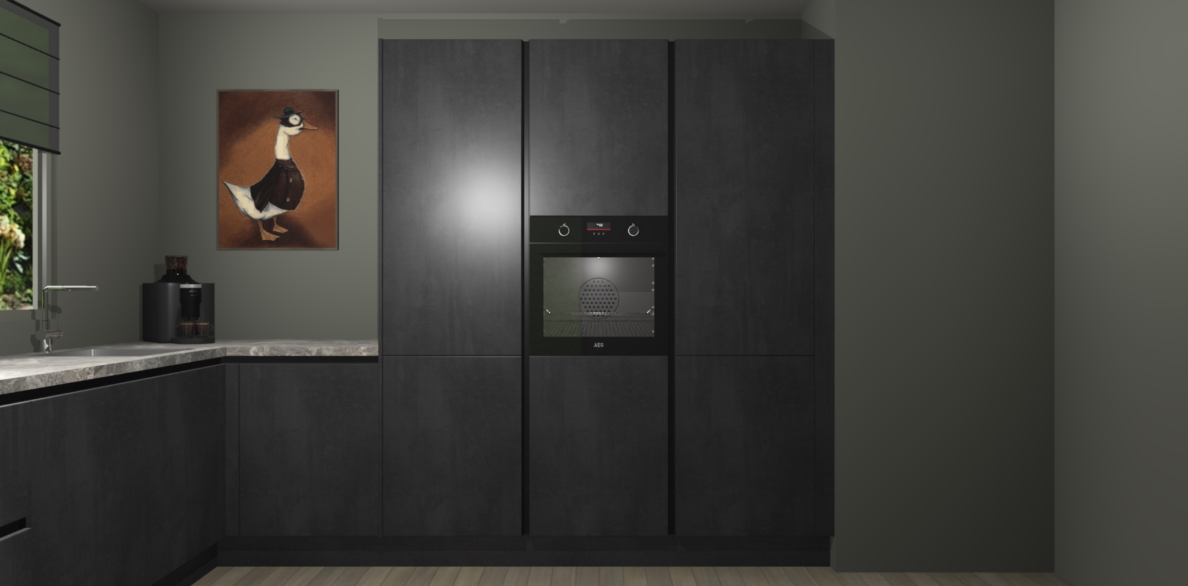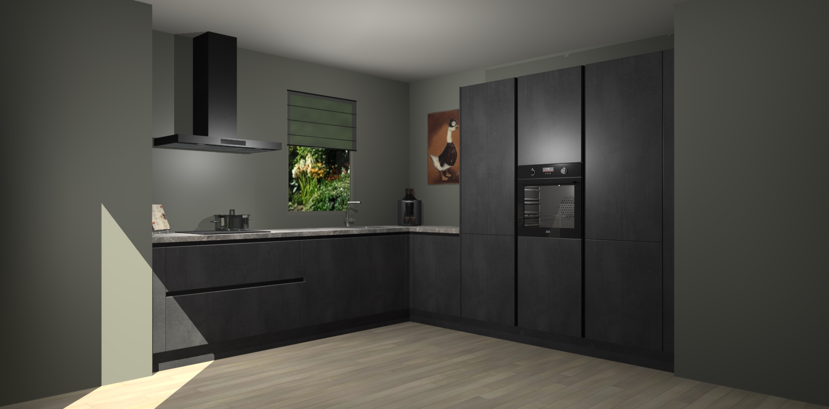 Welkom bij de Beton Zwarte greeploze keuken Laos. Deze prachtige keuken zal de komende jaren het middelpunt van de belangstelling in uw huis zijn. Uitgerust met vijf inbouwapparaten komt u nooit kookgereedschap tekort. Bovendien geeft de warme houtlook elke ruimte een uitnodigende en tijdloze uitstraling.