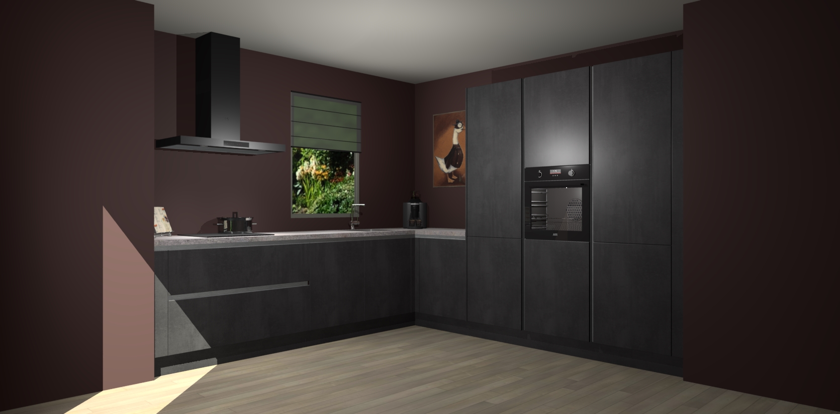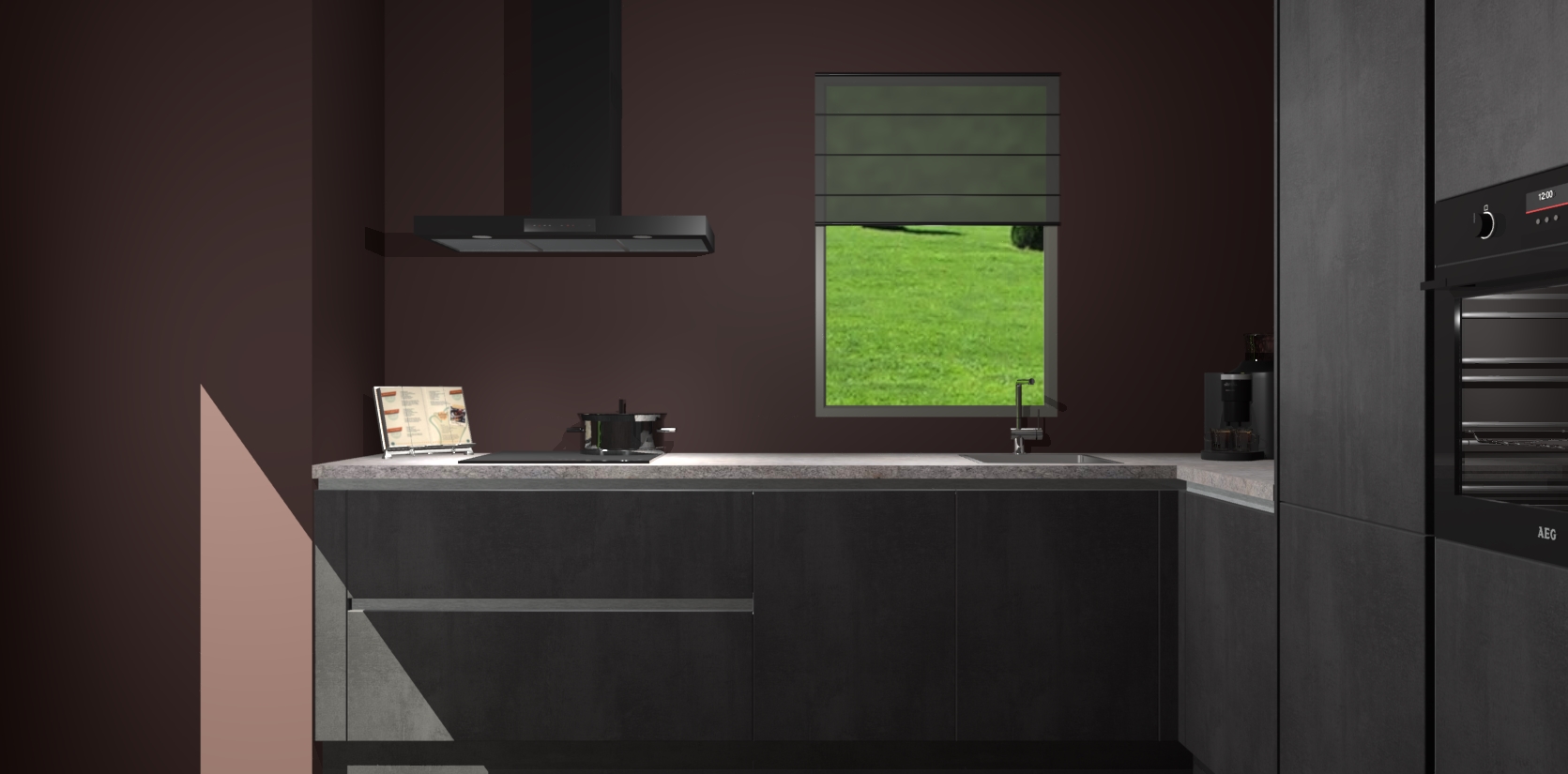 Welkom bij de Beton Zwarte greeploze keuken Laos. Deze prachtige keuken zal de komende jaren het middelpunt van de belangstelling in uw huis zijn. Uitgerust met vijf inbouwapparaten komt u nooit kookgereedschap tekort. Bovendien geeft de warme houtlook elke ruimte een uitnodigende en tijdloze uitstraling.