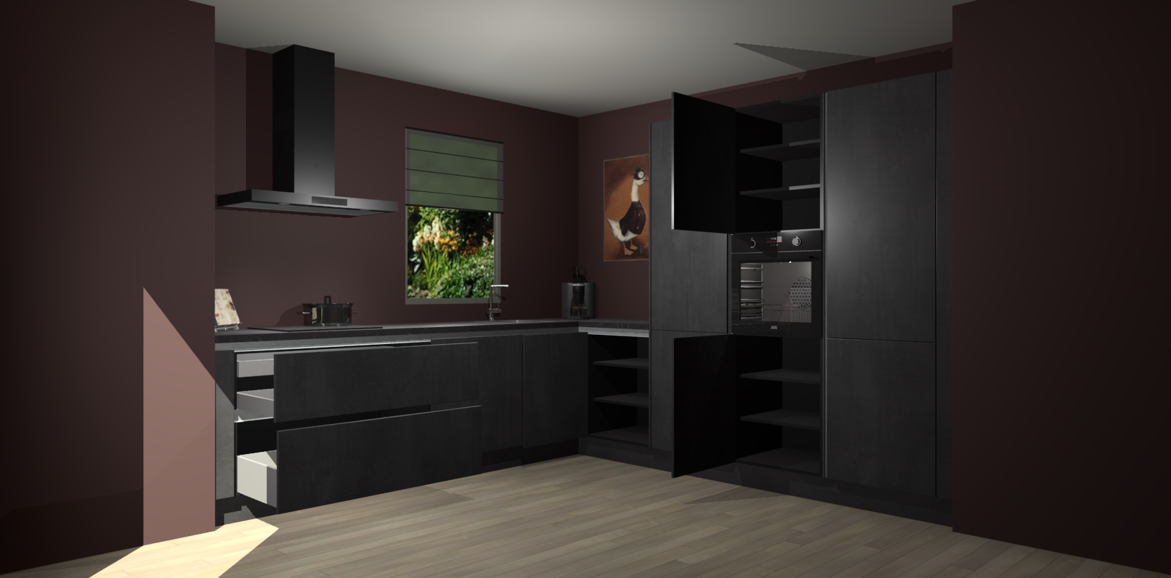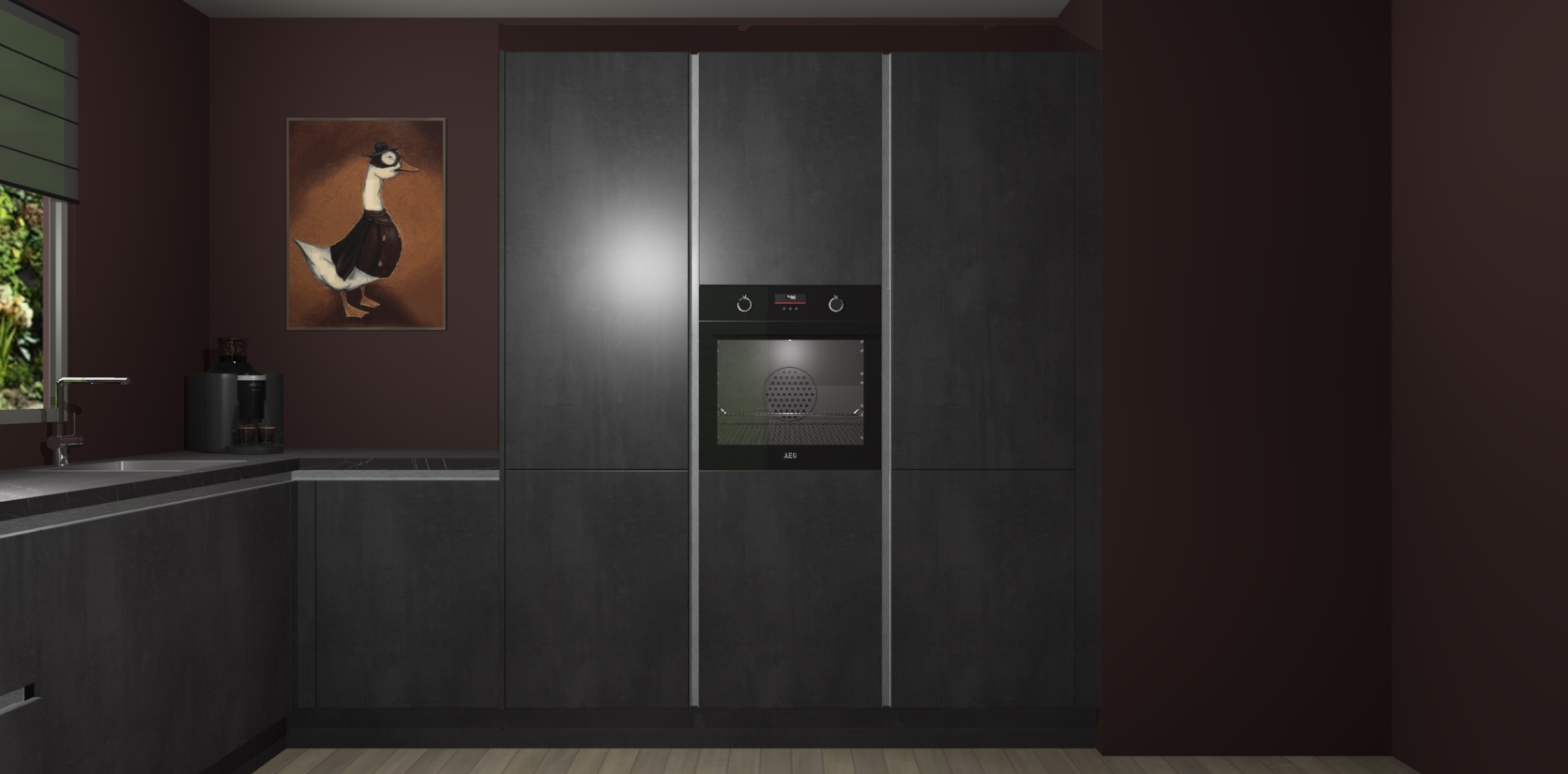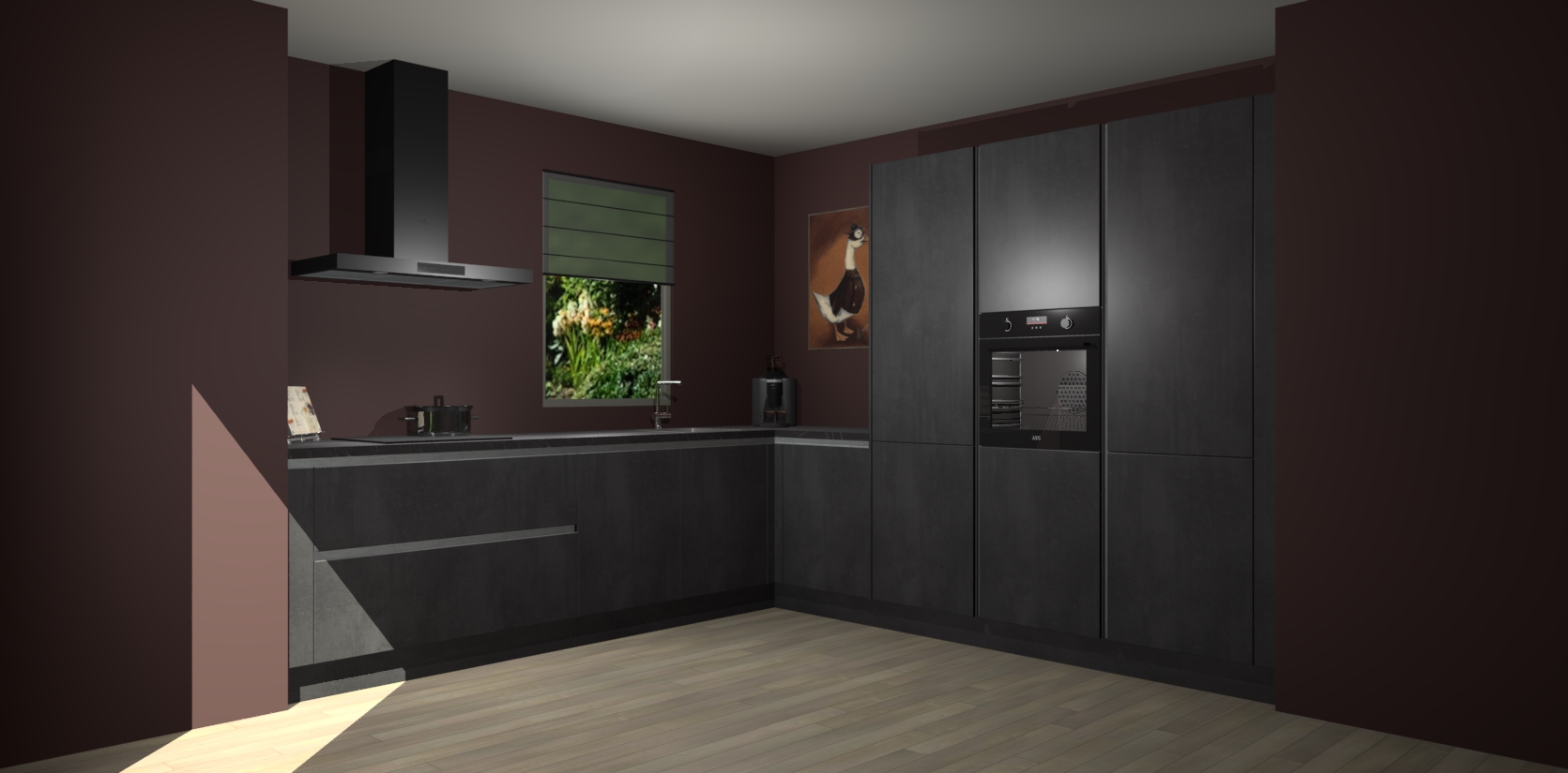 Welkom bij de Beton Zwarte greeploze keuken Laos. Deze prachtige keuken zal de komende jaren het middelpunt van de belangstelling in uw huis zijn. Uitgerust met vijf inbouwapparaten komt u nooit kookgereedschap tekort. Bovendien geeft de warme houtlook elke ruimte een uitnodigende en tijdloze uitstraling.