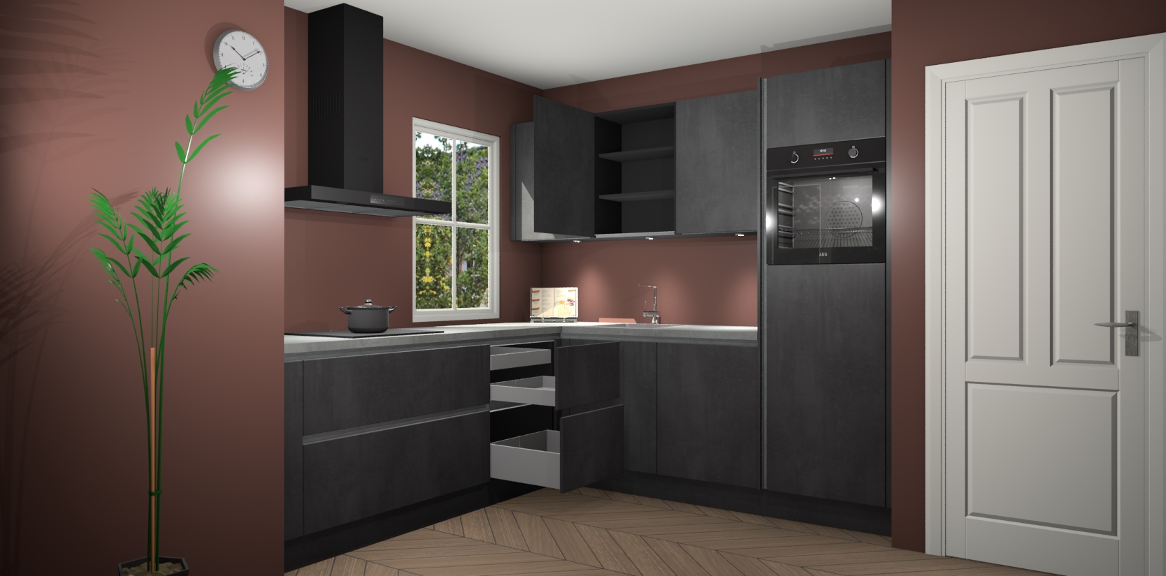 Maak kennis met de beton zwarte greeploze keuken Leeds de perfecte keukenoplossing voor stijlzoekers die streven naar zowel schoonheid als een lange levensduur in hun huis. Dit tijdloze ontwerp is modern en verfijnd, waardoor het een prachtige aanvulling is op elke leefruimte.