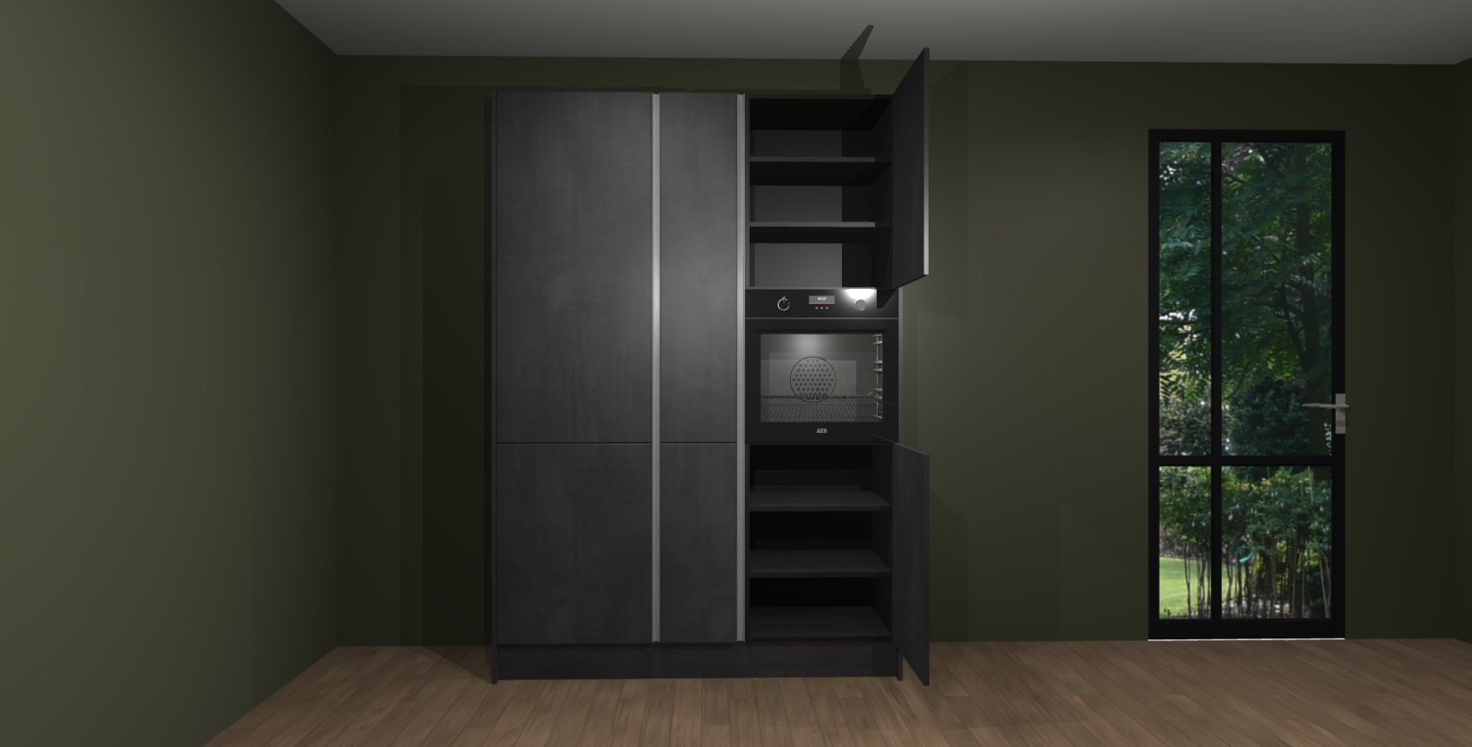 Met een modern, tijdloos design en ruime opslagruimte, zult u zich in no-time thuis voelen in uw nieuwe keuken. Uw leven wordt eenvoudiger met de soft-close deuren die voor het ultieme stille comfort zorgen - geen geluid dat u stoort terwijl u kookt. Ook is de keuken voorzien van 5 ingebouwde apparaten: een oven, inductie kookplaat, afzuigkap, vaatwasser en koelkast. Deze kunnen gemakkelijk na bestelling worden bijgewerkt naar AEG - waardoor uw luxe ervaring compleet is.
