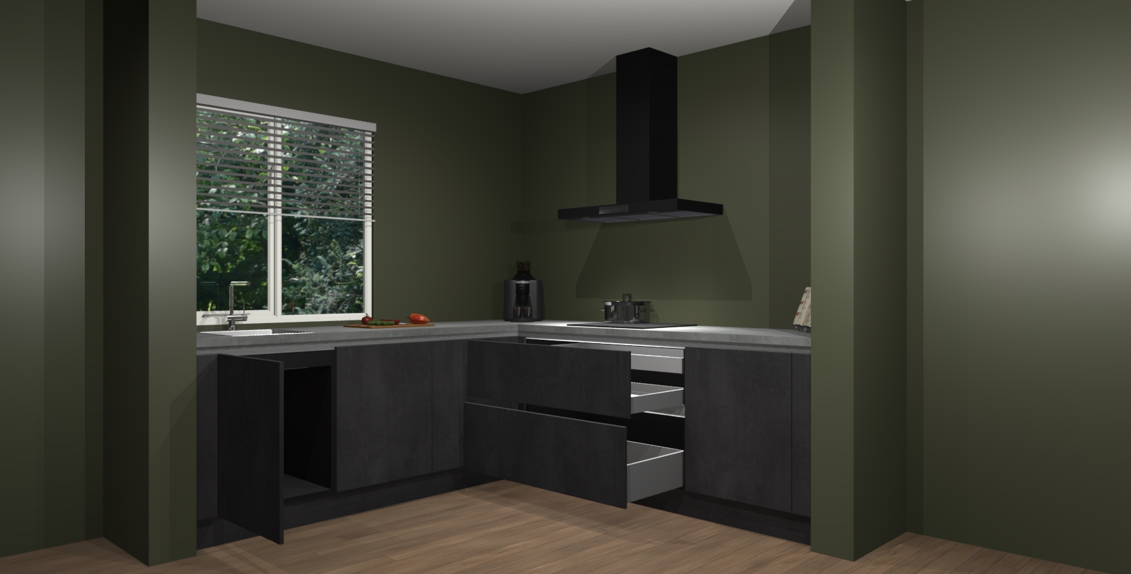 Wij presenteren de revolutie in keukens: de beton zwarte keuken Letland. Met modern design, een tijdloos uiterlijk en kasten die al voor gemonteerd worden geleverd, laat deze stijlvolle keuken uw kookervaring op een hele nieuwe manier transformeren.