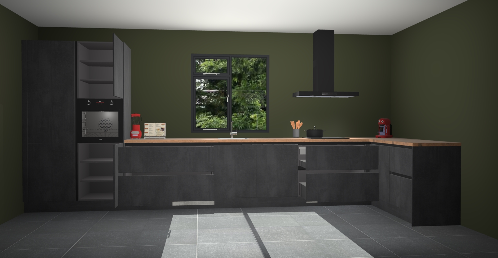 Wilt u uw keuken upgraden en de perfecte moderne toets geven? Kijk dan niet verder dan de Beton zwarte keuken Lille. Deze mega moderne keuken straalt warmte en sfeer uit en is daarmee de perfecte aanvulling voor elke ruimte.