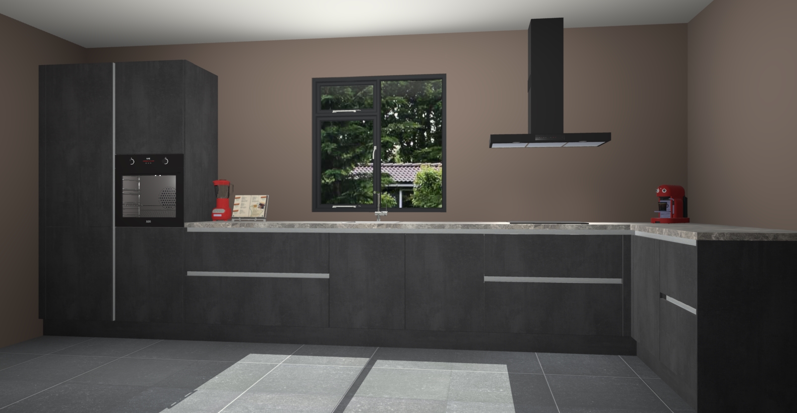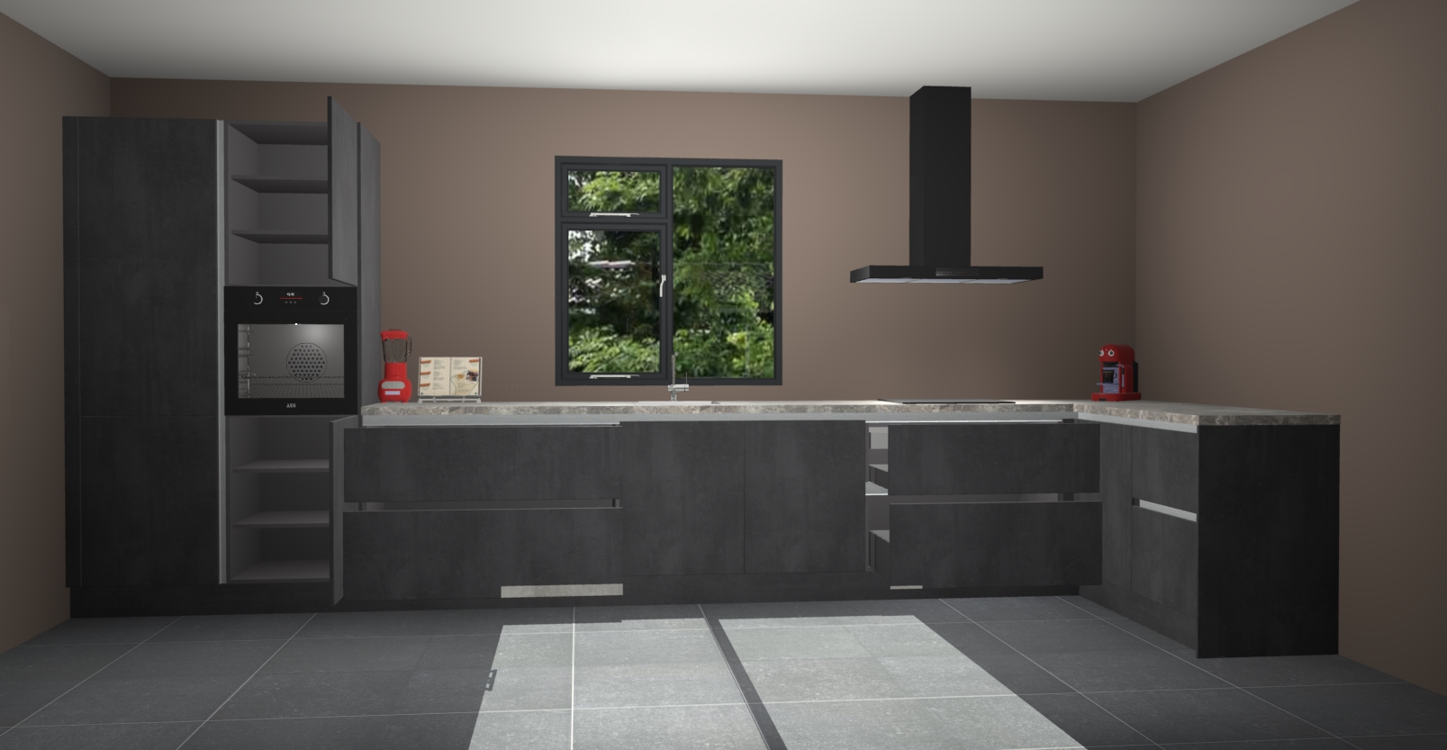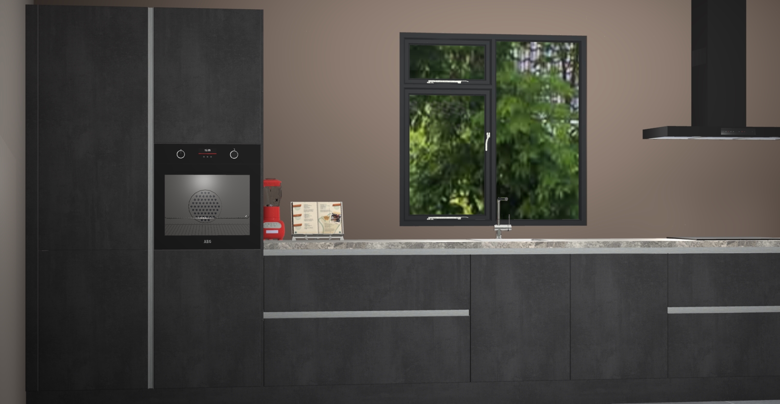 De Beton zwarte keuken Lille wordt geleverd met vijf inbouwapparaten - een oven, inductiekookplaat, afzuigkap, vaatwasser en koelkast. Maar dat is nog niet alles! Na bestelling kunnen deze apparaten eenvoudig worden geüpgraded naar premium AEG-apparatuur. Bovendien is er zelfs de optie om de oven te vervangen door een combimagnetron of uw inductiekookplaat te vervangen door een kookplaat met geïntegreerde afzuiging.