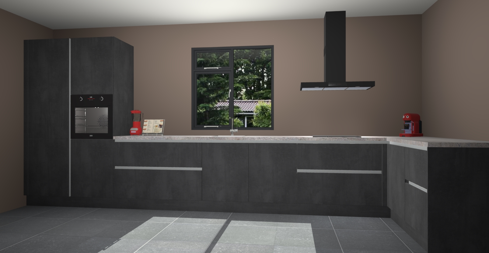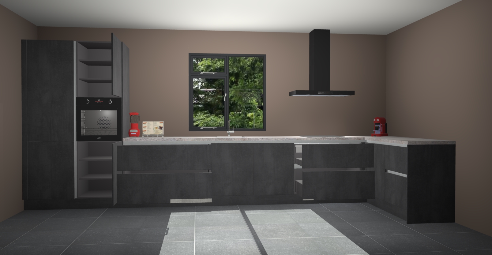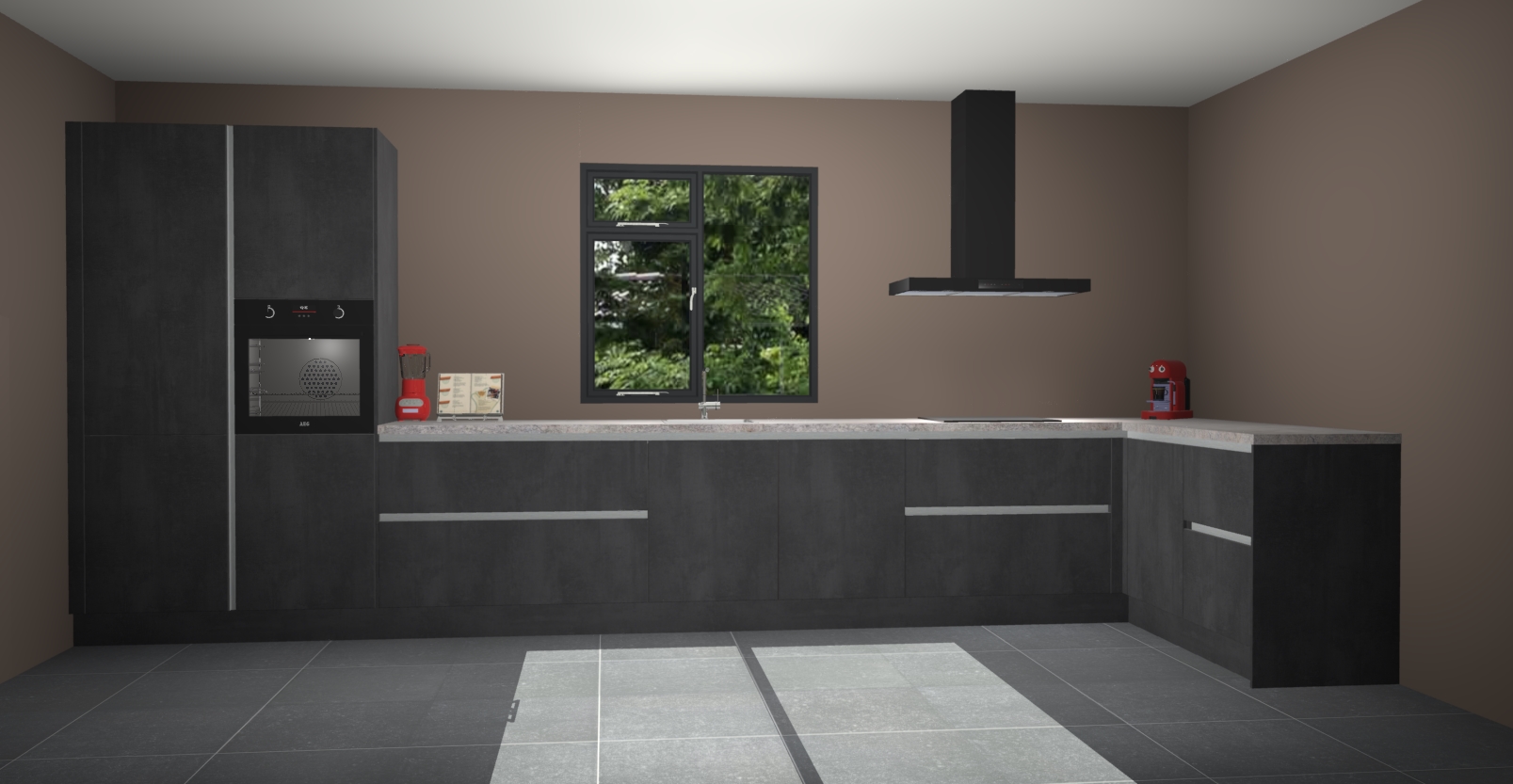 De Beton zwarte keuken Lille wordt geleverd met vijf inbouwapparaten - een oven, inductiekookplaat, afzuigkap, vaatwasser en koelkast. Maar dat is nog niet alles! Na bestelling kunnen deze apparaten eenvoudig worden geüpgraded naar premium AEG-apparatuur. Bovendien is er zelfs de optie om de oven te vervangen door een combimagnetron of uw inductiekookplaat te vervangen door een kookplaat met geïntegreerde afzuiging.