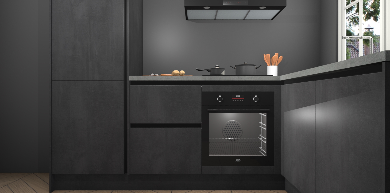 Met de Beton Zwarte greeploze keuken Linz krijgt u 5 op maat gemaakte apparaten: een oven, inductiekookplaat, afzuigkap, vaatwasser en koelkast die na bestelling makkelijk worden geüpgraded naar AEG-producten. Met de zacht sluitende deuren, bent u verzekerd van eenvoudige bediening in stilte. Het kastmeubilair wordt alvast pre-assemblage geleverd waardoor u sneller met het installeren begint. Ook zijn alle deuren voorzien van softclose zodat er geen sporen op de lade blijven als u ze dicht doet. Bovendien hoeft u bij ons geen twijfels of verassingen te hebben: we hebben een vaste lage prijs waardoor u weet wat u mag verwachten bij elke bestelling.