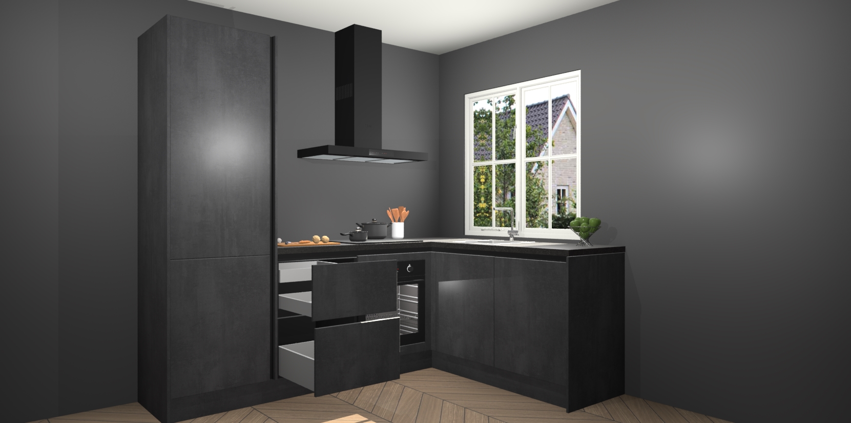 Met de Beton Zwarte greeploze keuken Linz krijgt u 5 op maat gemaakte apparaten: een oven, inductiekookplaat, afzuigkap, vaatwasser en koelkast die na bestelling makkelijk worden geüpgraded naar AEG-producten. Met de zacht sluitende deuren, bent u verzekerd van eenvoudige bediening in stilte. Het kastmeubilair wordt alvast pre-assemblage geleverd waardoor u sneller met het installeren begint. Ook zijn alle deuren voorzien van softclose zodat er geen sporen op de lade blijven als u ze dicht doet. Bovendien hoeft u bij ons geen twijfels of verassingen te hebben: we hebben een vaste lage prijs waardoor u weet wat u mag verwachten bij elke bestelling.