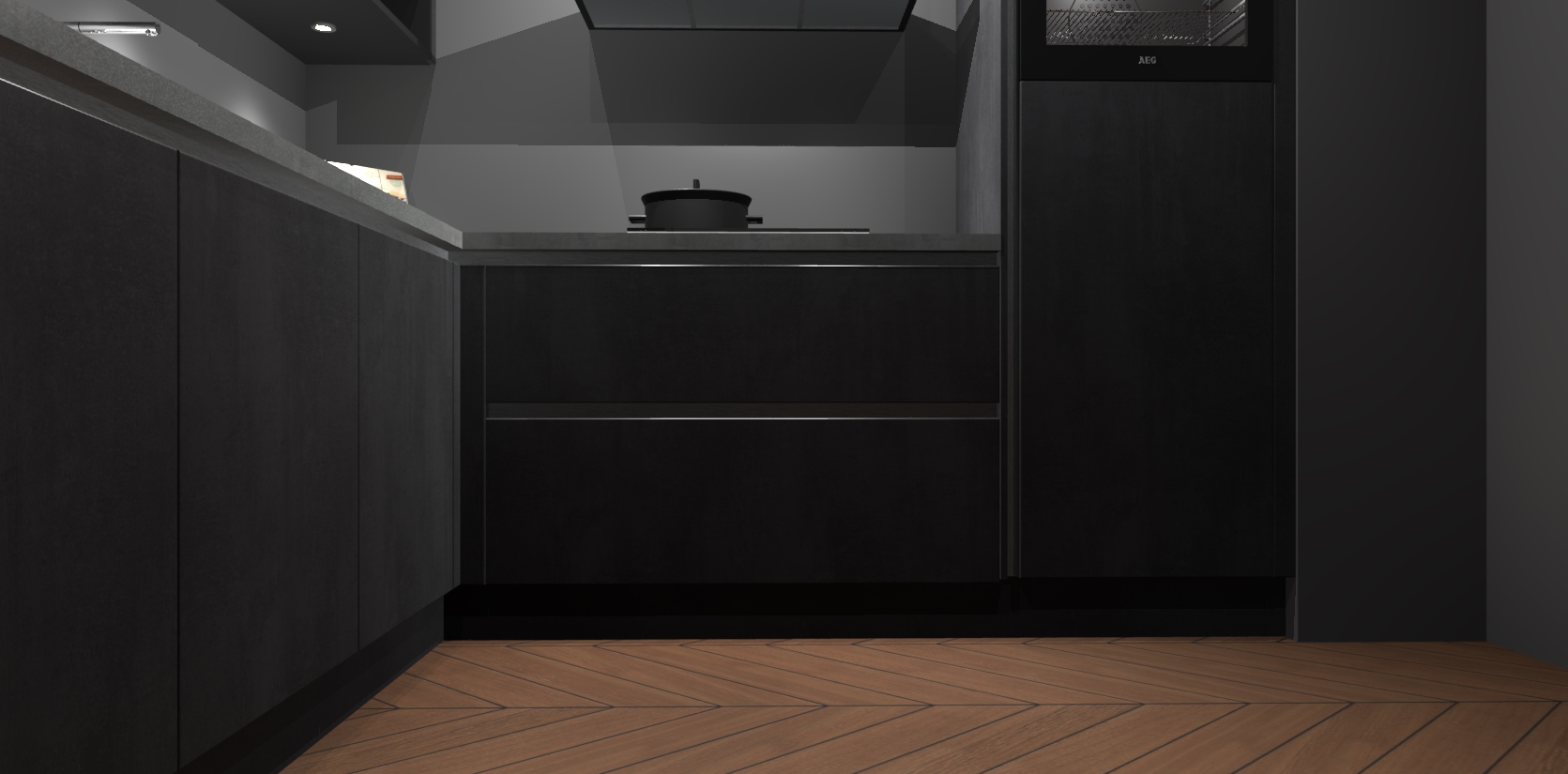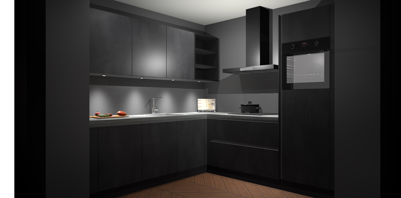 Met een modern, tijdloos design en ruime opslagruimte, zult u zich in no-time thuis voelen in uw nieuwe keuken. Uw leven wordt eenvoudiger met de soft-close deuren die voor het ultieme stille comfort zorgen - geen geluid dat u stoort terwijl u kookt. Ook is de keuken voorzien van 5 ingebouwde apparaten: een oven, inductie kookplaat, afzuigkap, vaatwasser en koelkast. Deze kunnen gemakkelijk na bestelling worden bijgewerkt naar AEG - waardoor uw luxe ervaring compleet is.