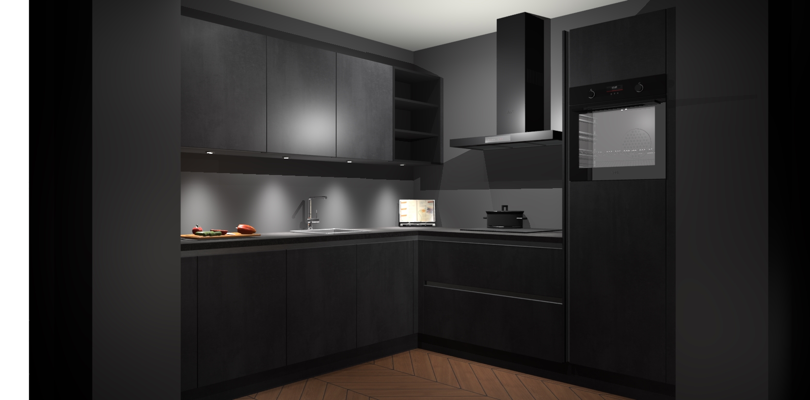 Wij presenteren de revolutie in keukens: de Beton Zwarte greeploze keuken Luanda. Met modern design, een tijdloos uiterlijk en kasten die al voor gemonteerd worden geleverd, laat deze stijlvolle keuken uw kookervaring op een hele nieuwe manier transformeren.