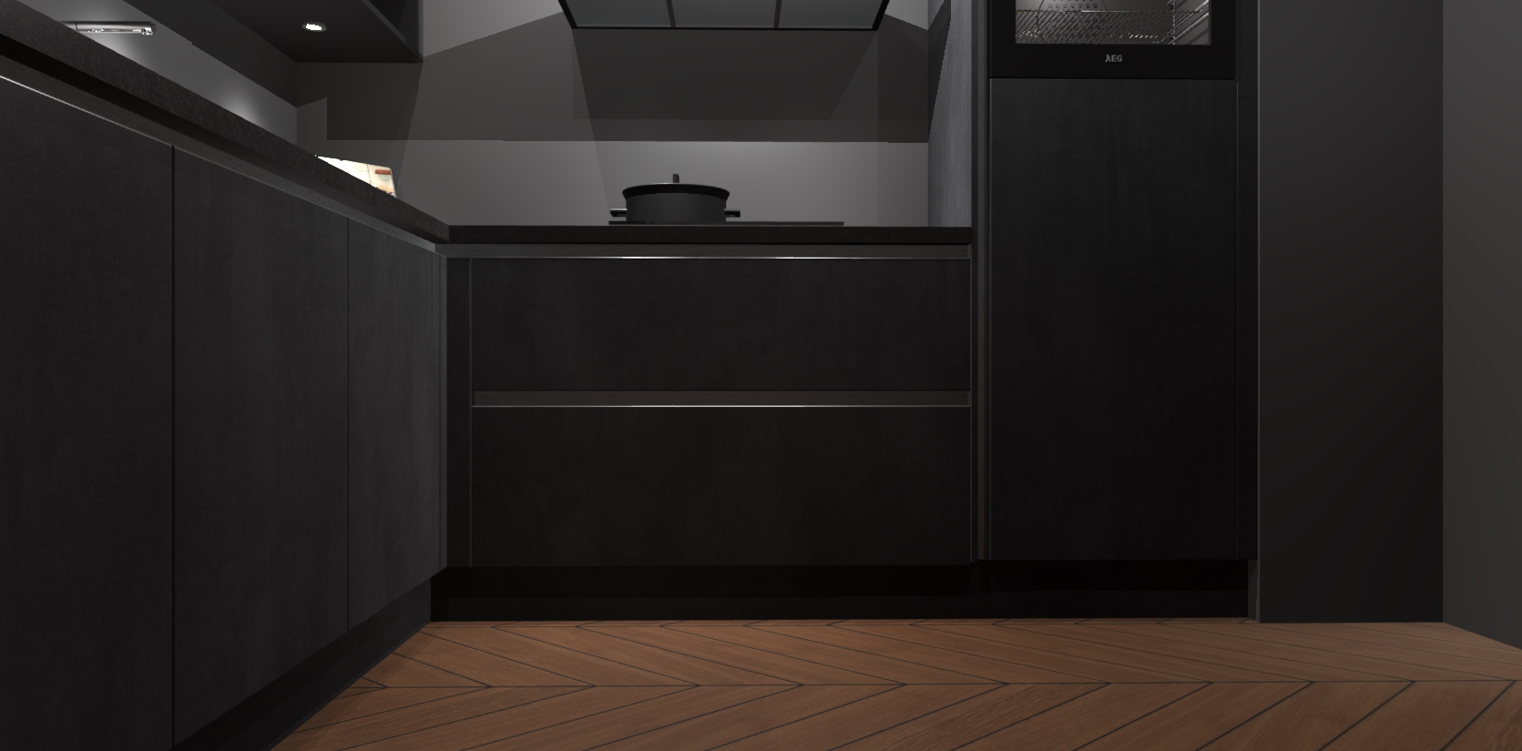 Met een modern, tijdloos design en ruime opslagruimte, zult u zich in no-time thuis voelen in uw nieuwe keuken. Uw leven wordt eenvoudiger met de soft-close deuren die voor het ultieme stille comfort zorgen - geen geluid dat u stoort terwijl u kookt. Ook is de keuken voorzien van 5 ingebouwde apparaten: een oven, inductie kookplaat, afzuigkap, vaatwasser en koelkast. Deze kunnen gemakkelijk na bestelling worden bijgewerkt naar AEG - waardoor uw luxe ervaring compleet is.