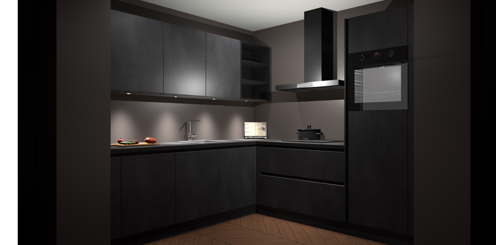 Wij presenteren de revolutie in keukens: de Beton Zwarte greeploze keuken Luanda. Met modern design, een tijdloos uiterlijk en kasten die al voor gemonteerd worden geleverd, laat deze stijlvolle keuken uw kookervaring op een hele nieuwe manier transformeren.